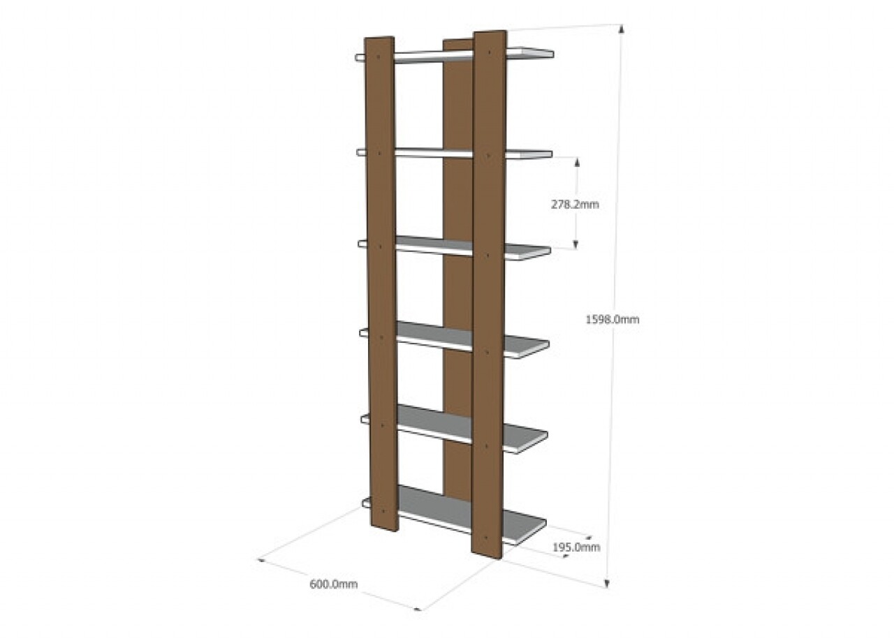 Biblioteca Wooden Art, Silver White Walnut, 60x19.5x159.8 cm