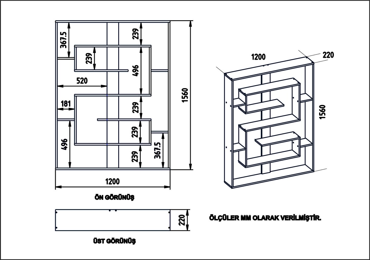 Biblioteca, Zena Home, Esteban 875ZNA3649, 120 x 156 x 22 cm, pal melaminat, negru