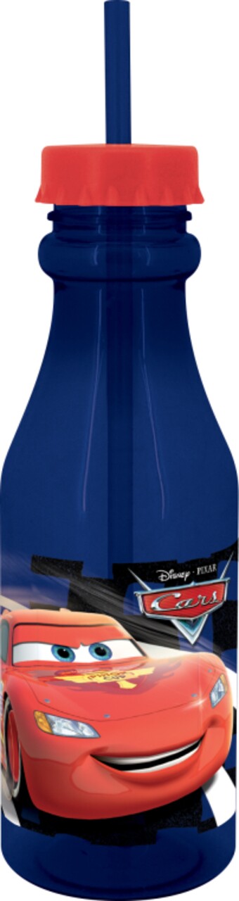 Bidon cu pai Cars, Disney, 500 ml, plastic, albastru