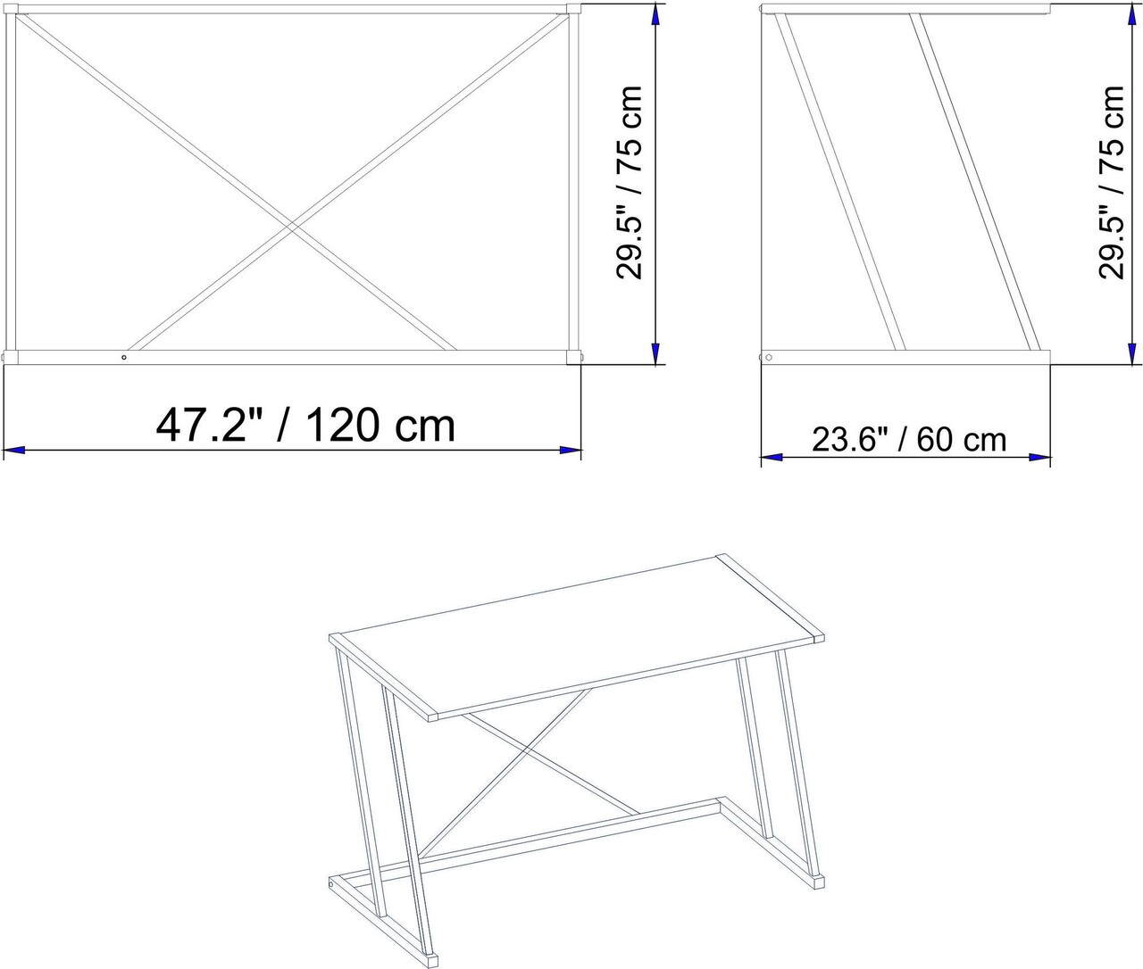 Birou Anemon, Hadley, 120x60x75 cm, PAL, alb/auriu