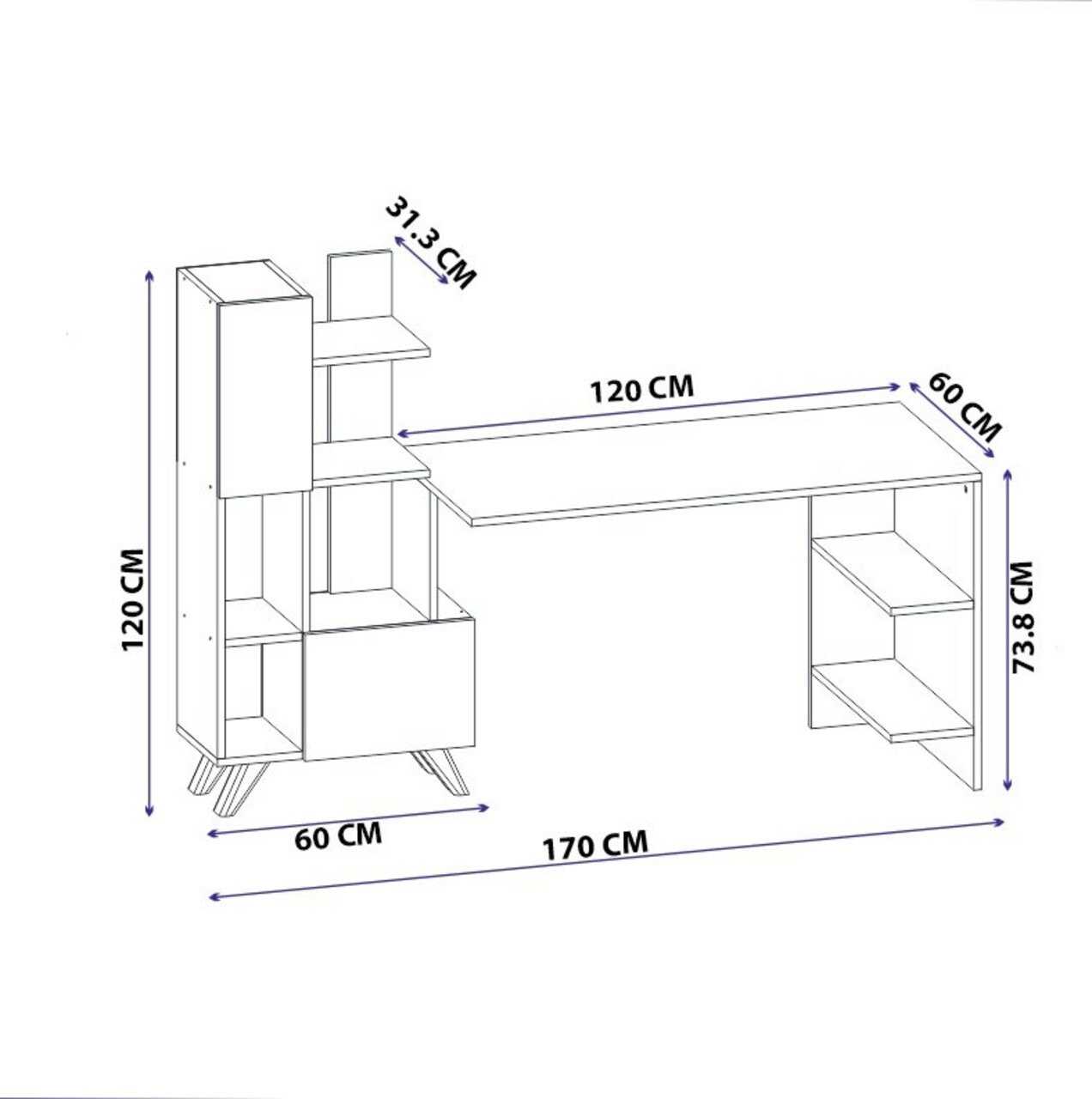 Birou, Coraline, Alis, 170 x 120 x 60 cm, pal melaminat, alb/nuc