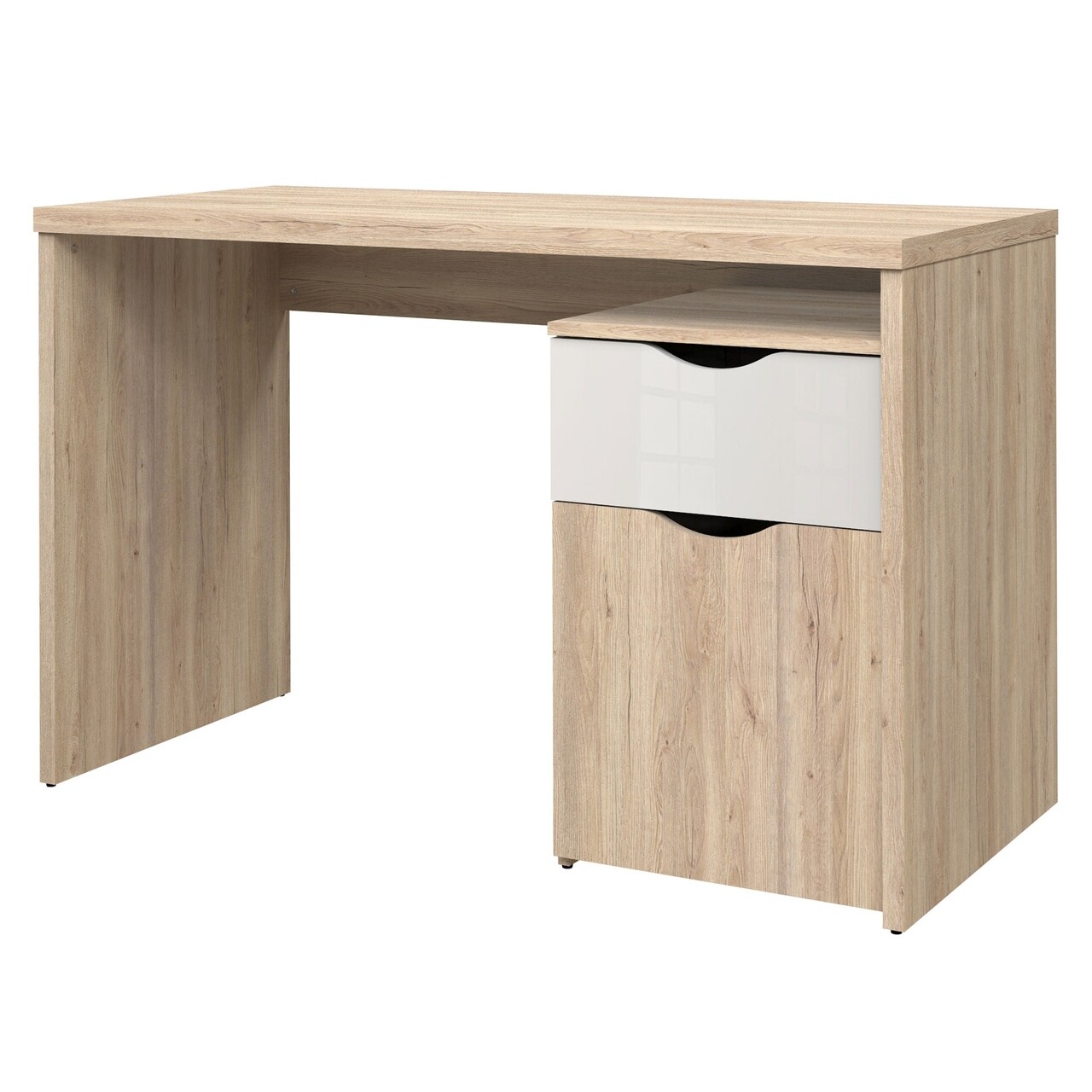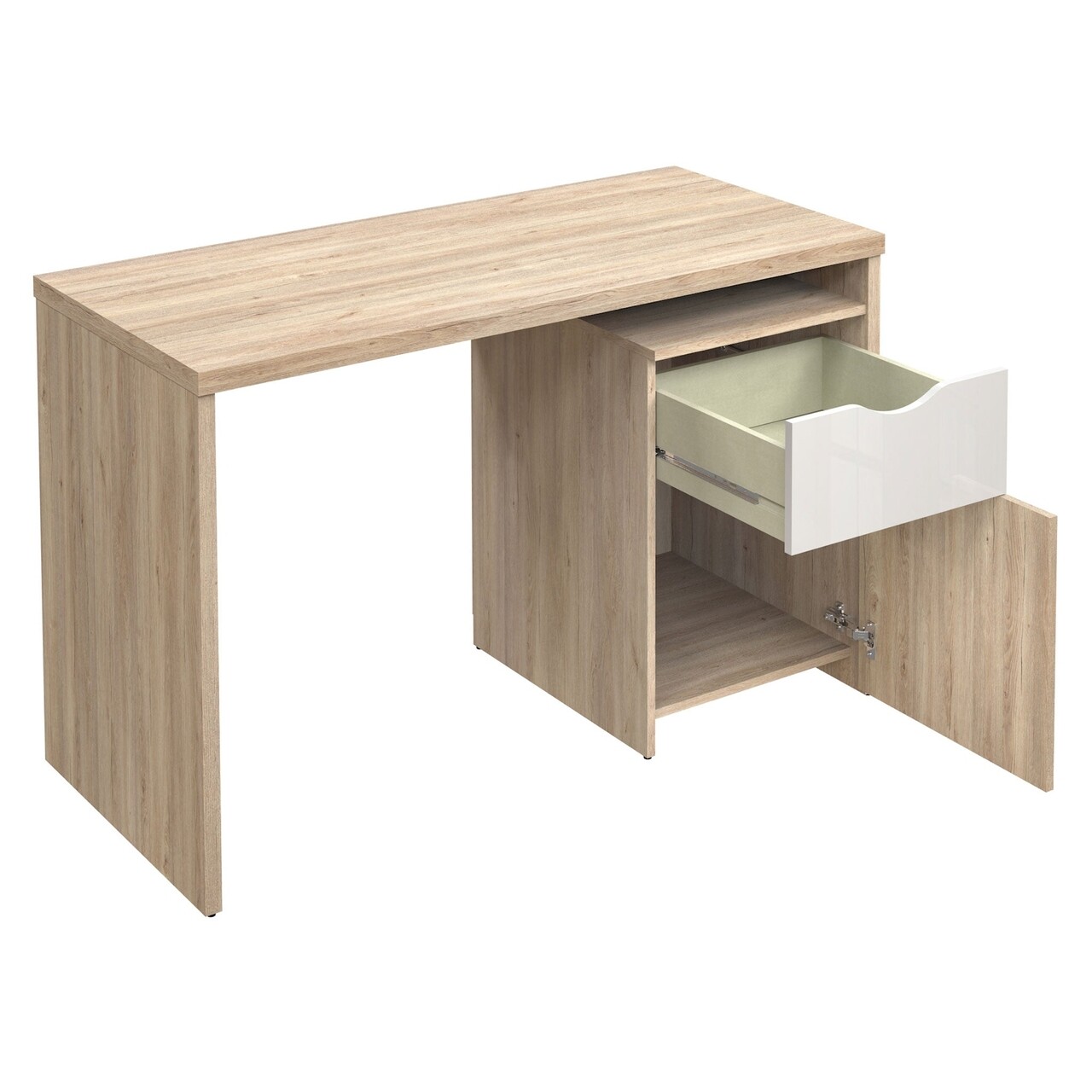 Birou cu 1 usa, 1 sertar, Darryl, L.120 l.55 H.75, pal, stejar deschis/alb