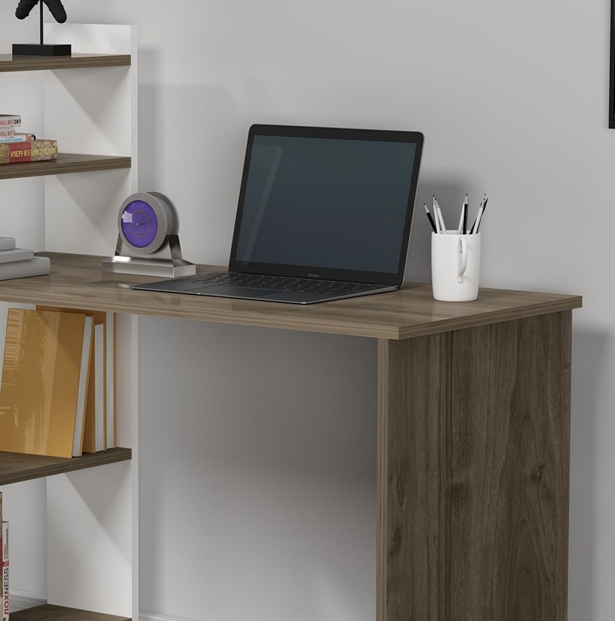 Birou cu raft, Olivia, Enna, 110 x 110 x 50 cm, pal melaminat, nuc/alb