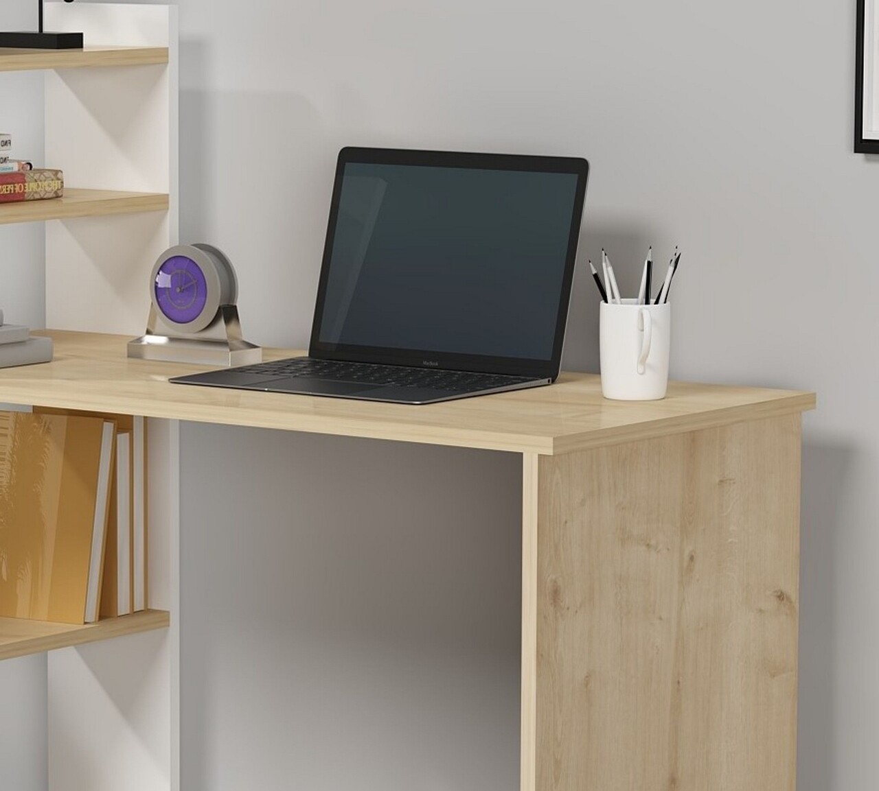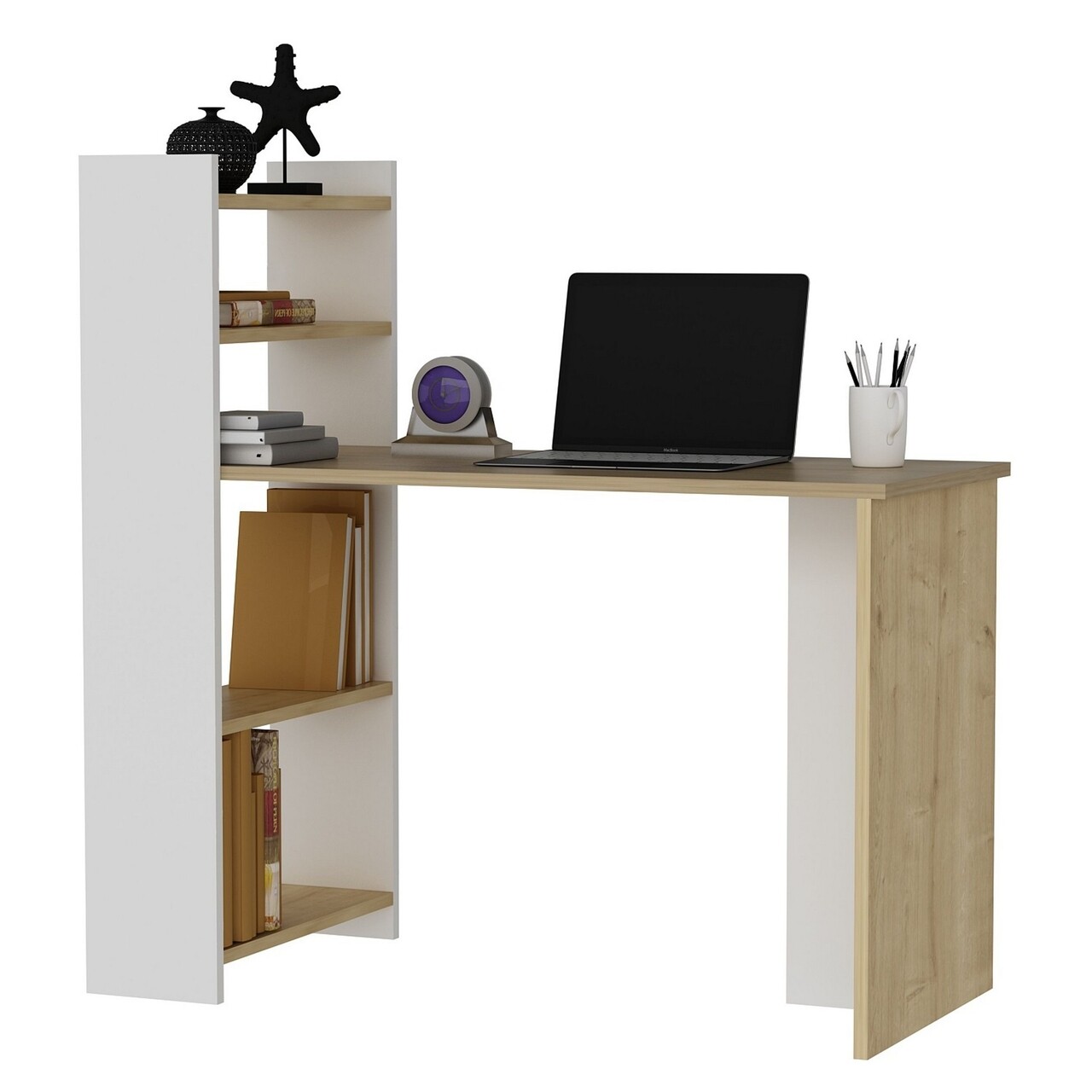 Birou cu raft, Olivia, Enna, 110 x 110 x 50 cm, pal melaminat, stejar/alb