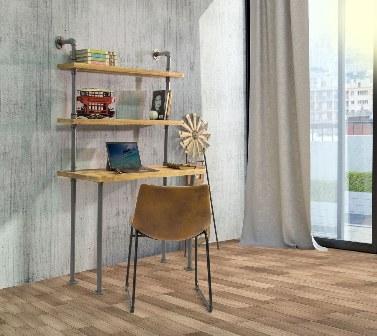 Birou cu rafturi Manhattan, Mauro Ferretti, 100 x 45 x 165.5 cm, lemn de brad/fier