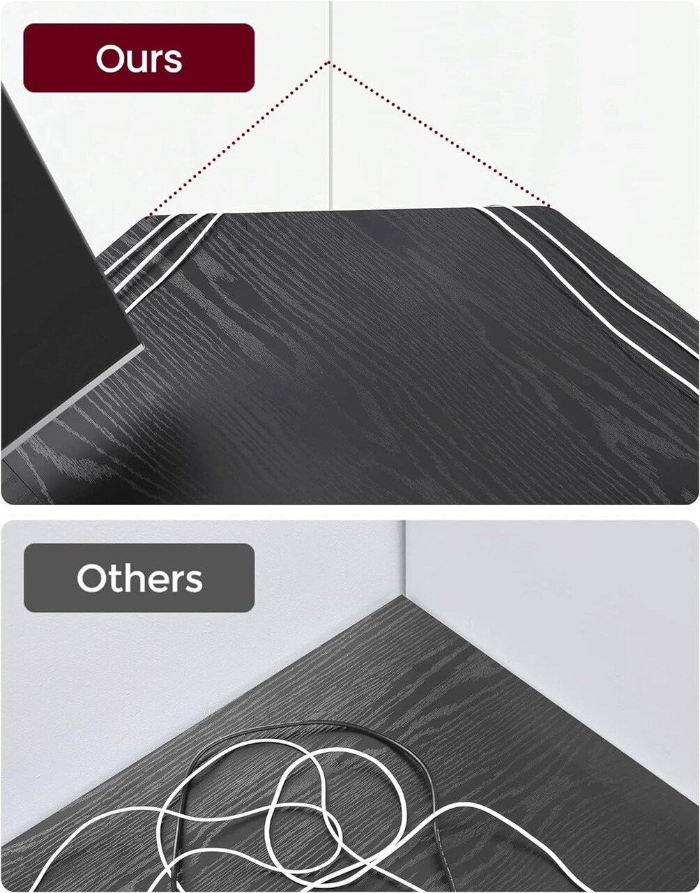 Colt decupat pentru a ordona cablurile Coltul din spate al acestui birou de colt in forma de L este decupat pentru a permite trecerea cablurilor, ajutandu-va sa gestionati cablurile de la aparatele electronice si sa va pastrati biroul curat si atractiv.