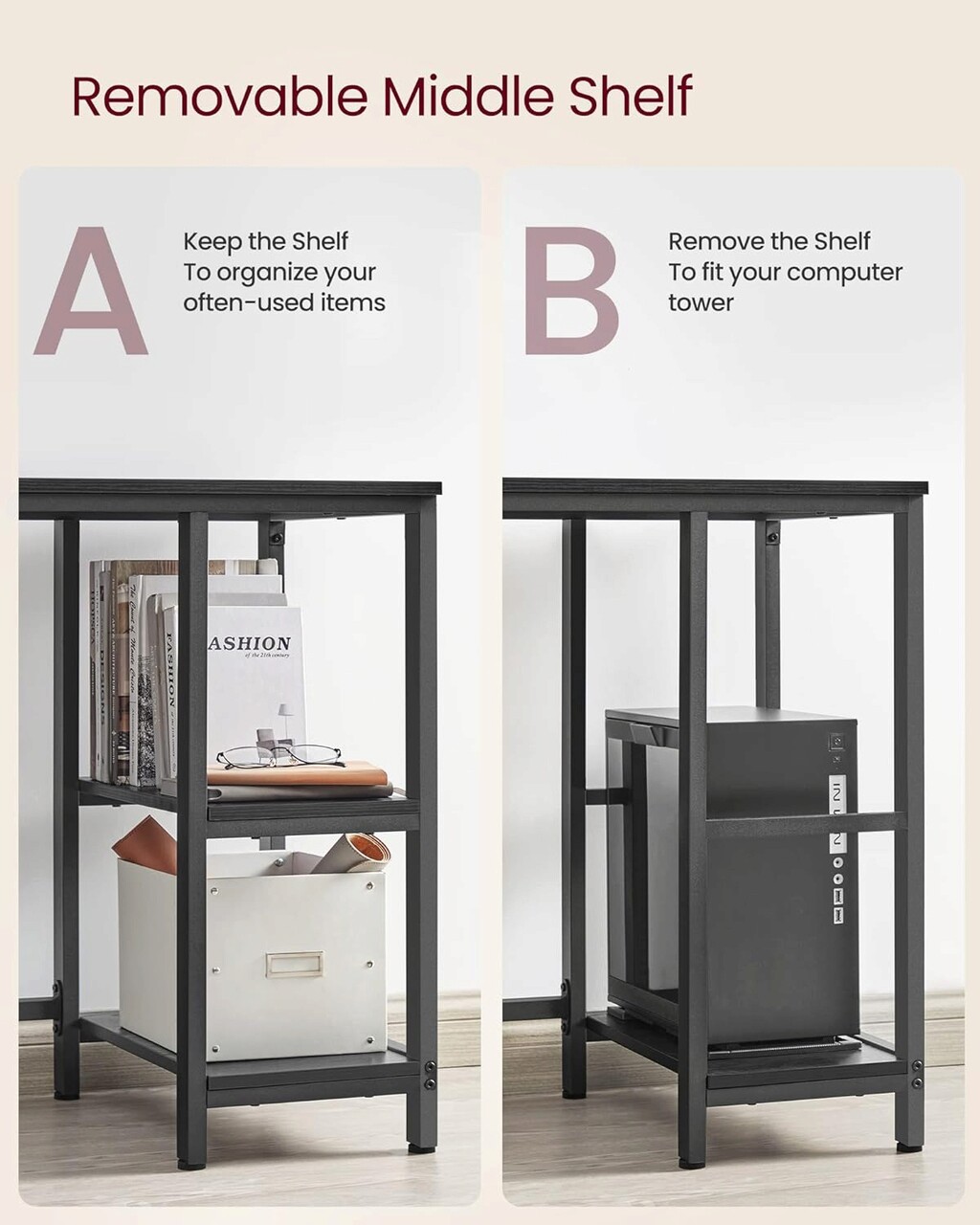 Raft de depozitare detasabil Raftul superior al celor 2 compartimente de depozitare deschise este detasabil. Il puteti indeparta pentru a va potrivi unitatea de calculator sau il puteti pastra pentru a depozita carti, dosare sau articole utilizate frecvent pentru acces usor.