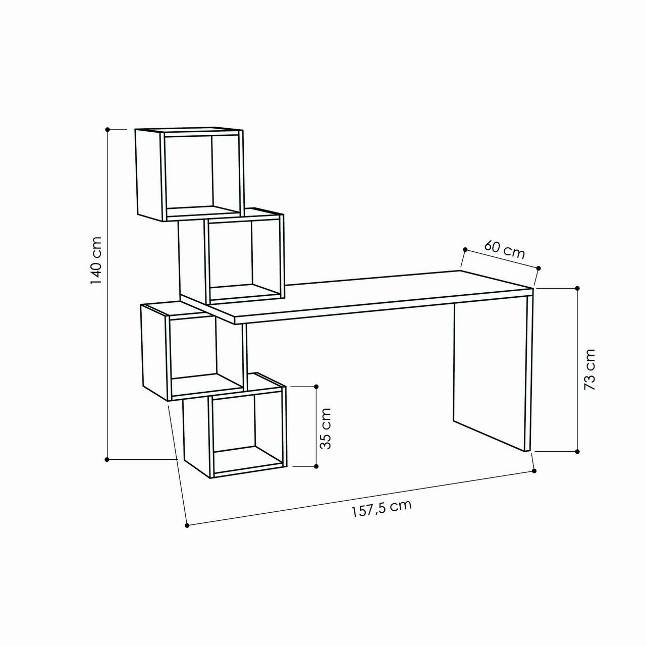 Dimensiunea biroului: Latime: 157,5 cm