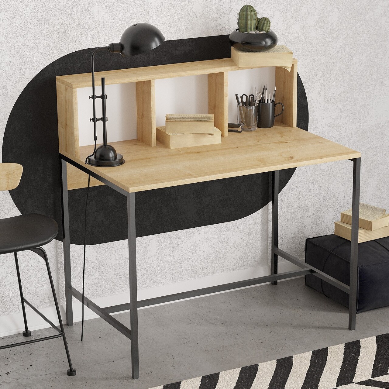Birou, Elegance, Dustin, 100x102x60 cm, PAL, Stejar safir / negru