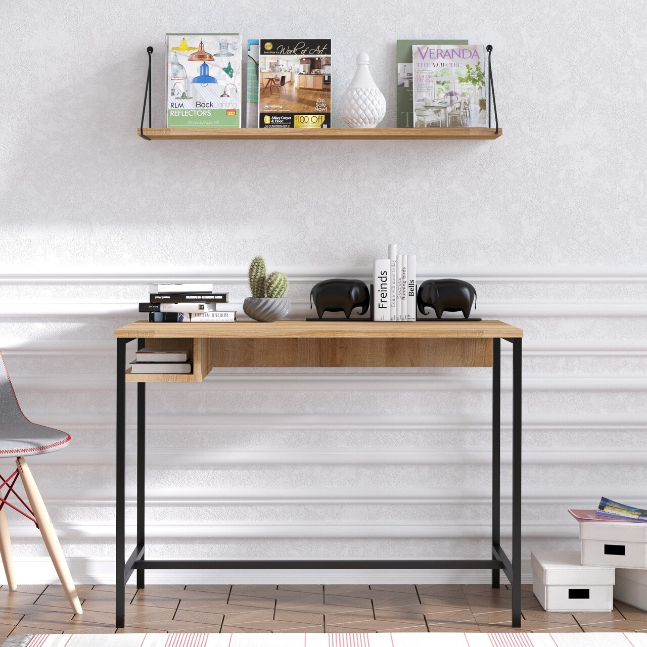 Birou, Elegance, Lou, 100x74x60 cm, PAL, Stejar safir / negru