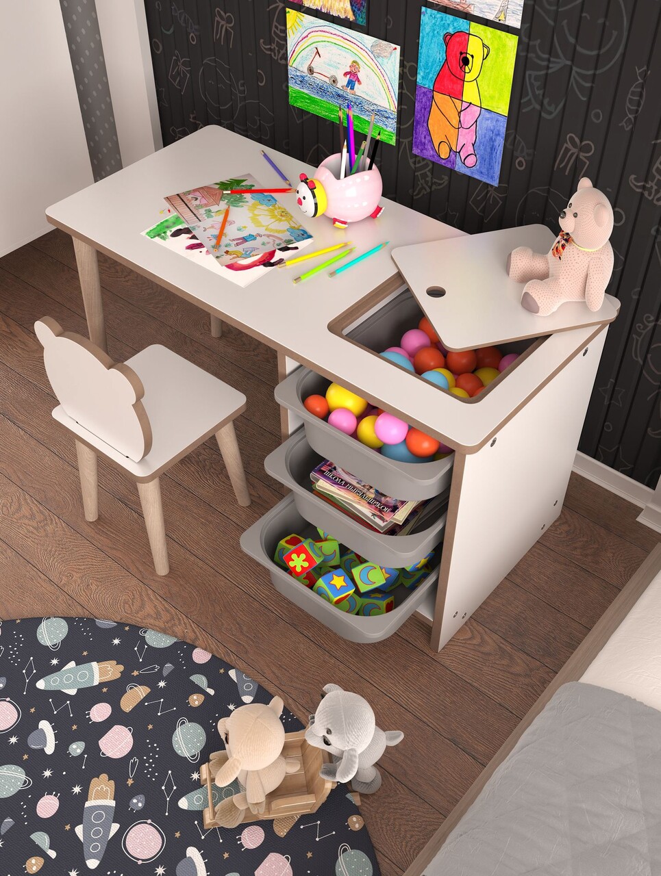Birou, Estella, Soho, PAL, Alb/Gri