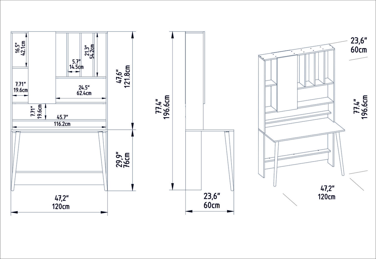 Birou, Hanah Home, Wood, 120x60x196.6 cm, Alb / Stejar