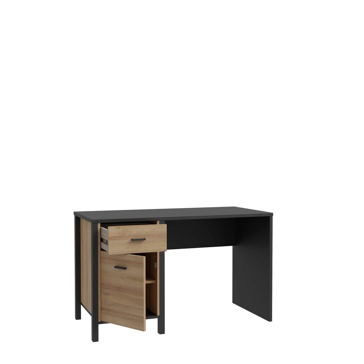 Birou Heusden, Bedora, 120x56.5x72.3 cm, PAL/metal, negru/stejar