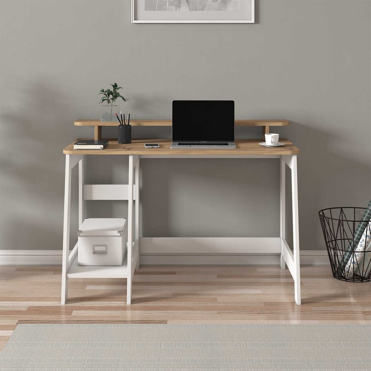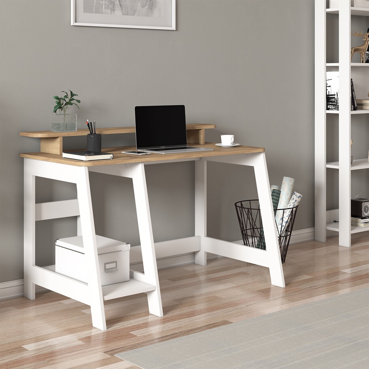 Birou, Inarch, Country, 120x73x60 cm, PAL, Alb / Stejar