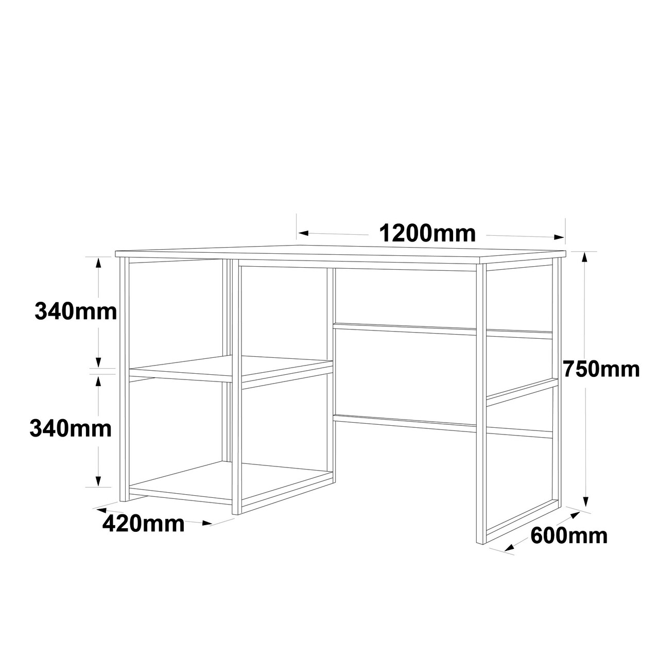 Birou, Locelso, VG23, 120 x 75 x 60 cm, pal melaminat/metal, alb/auriu