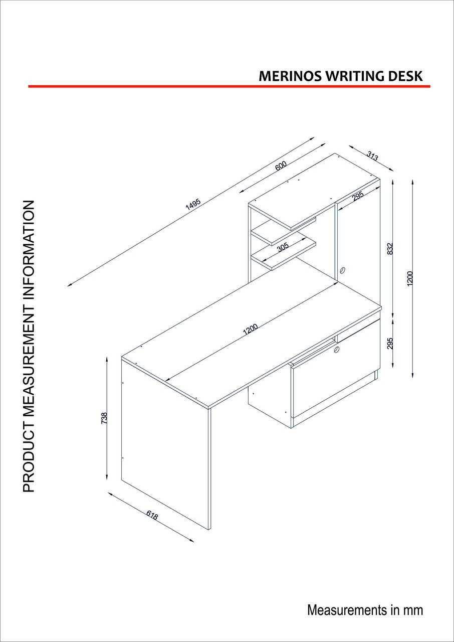 Birou Merinos, Furny Home, 150x62x120 cm, alb