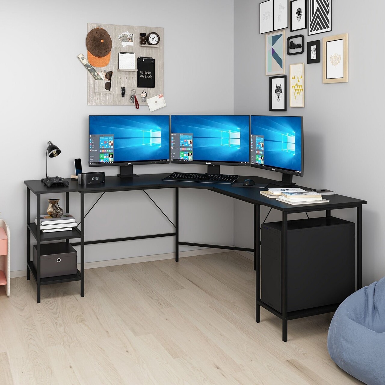Birou, Minerva, Power L, 180x76x60 cm, PAL, Negru