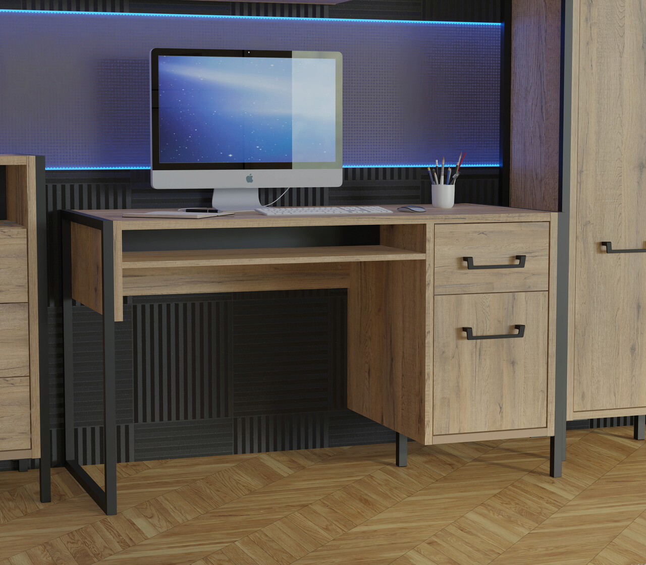 Birou Oss, Bedora, 129.4x60.2x74.7 cm, PAL/metal, stejar/negru