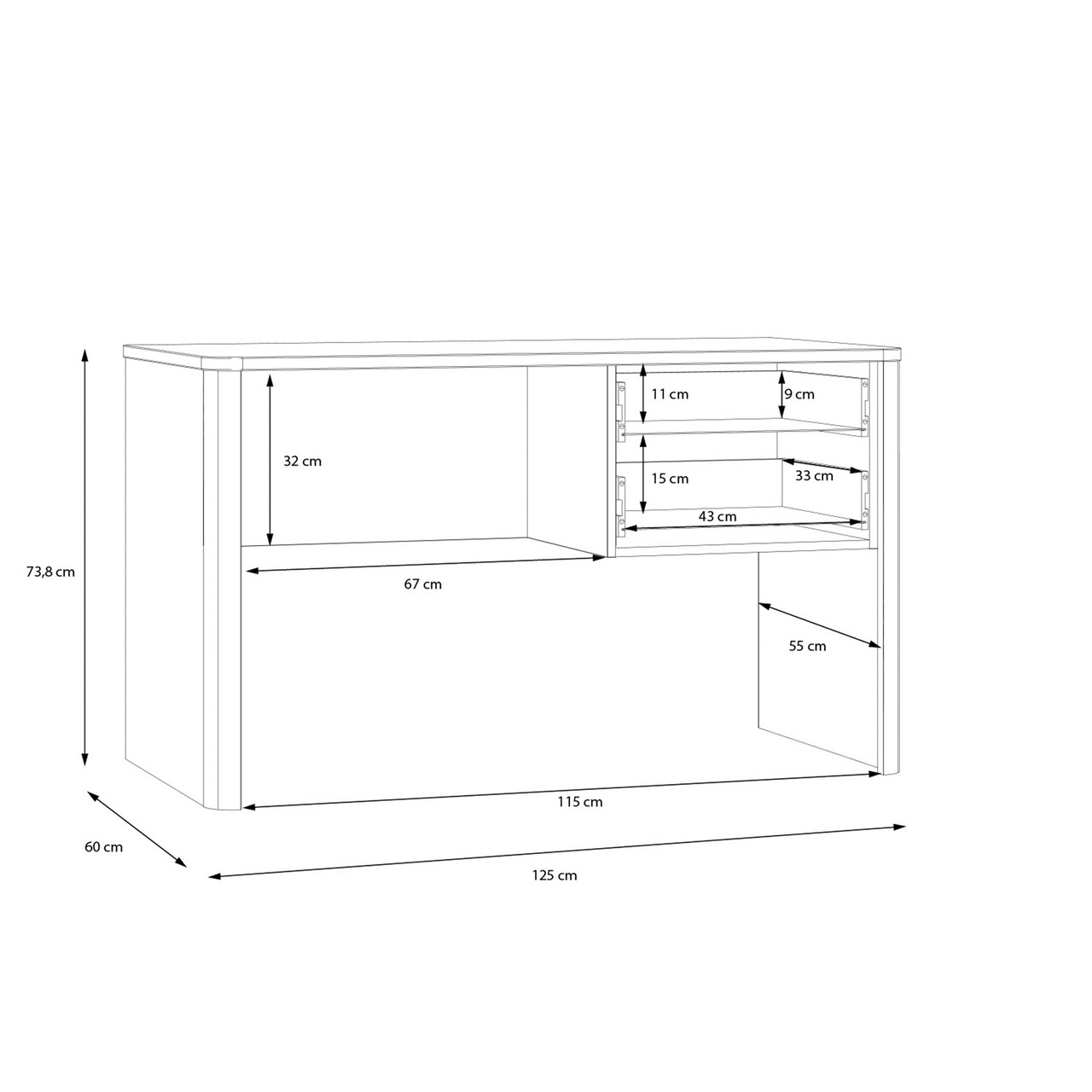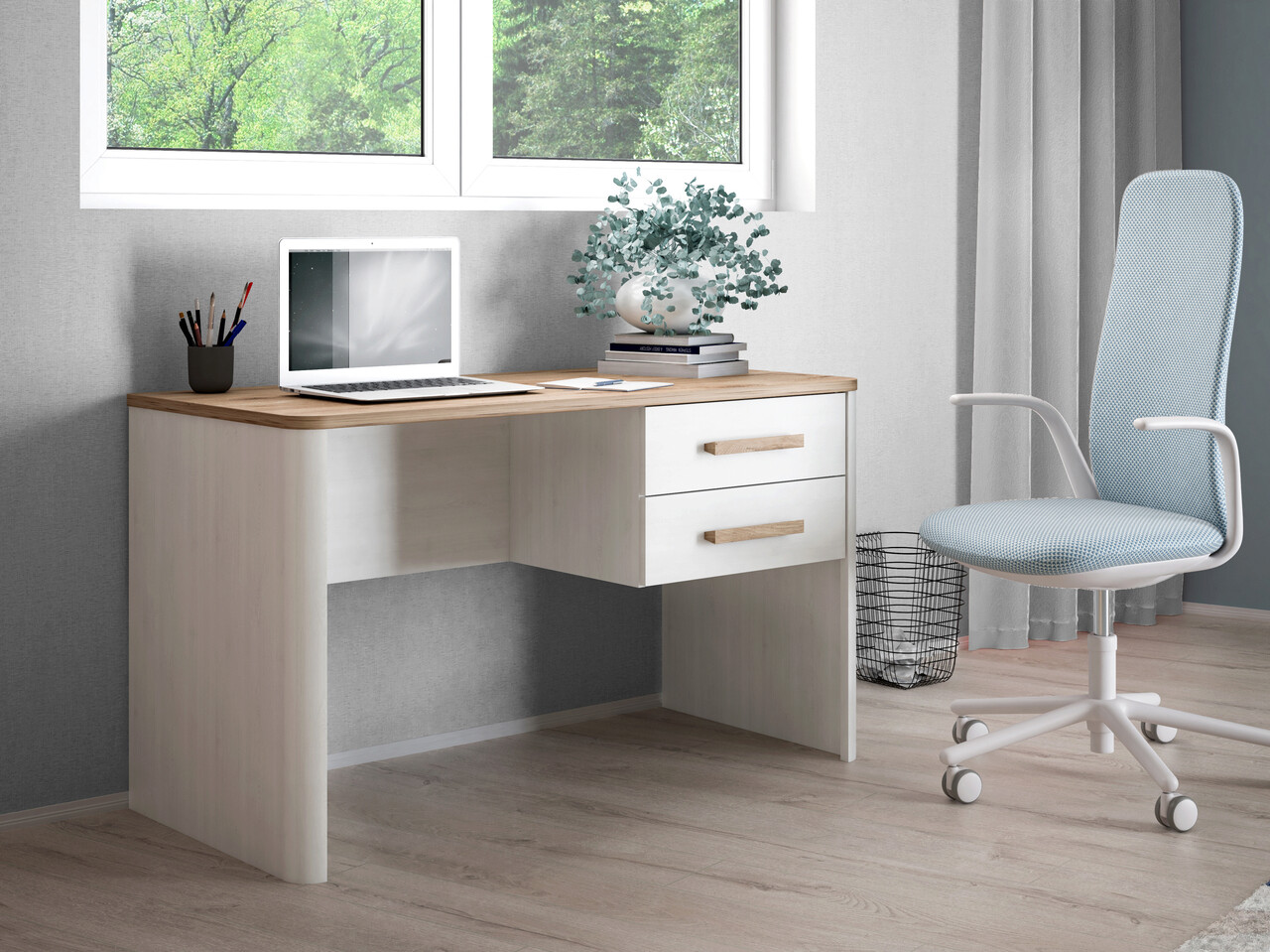 Birou Oude, Bedora, 125x60x73.8 cm, PAL/MDF/lemn, alb/stejar