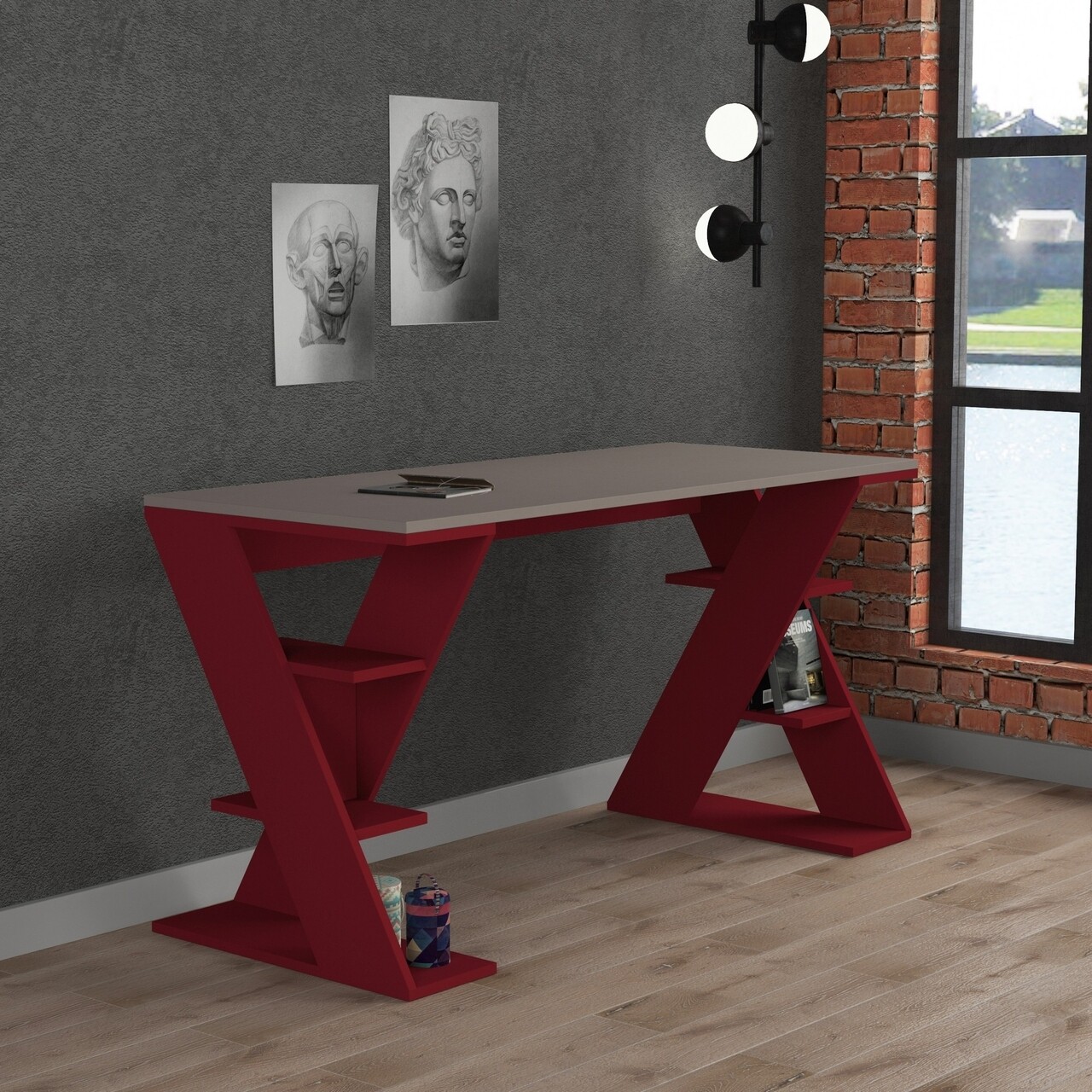 Birou Papillon, Decortie, 140x60x75 cm, cafeniu/visiniu