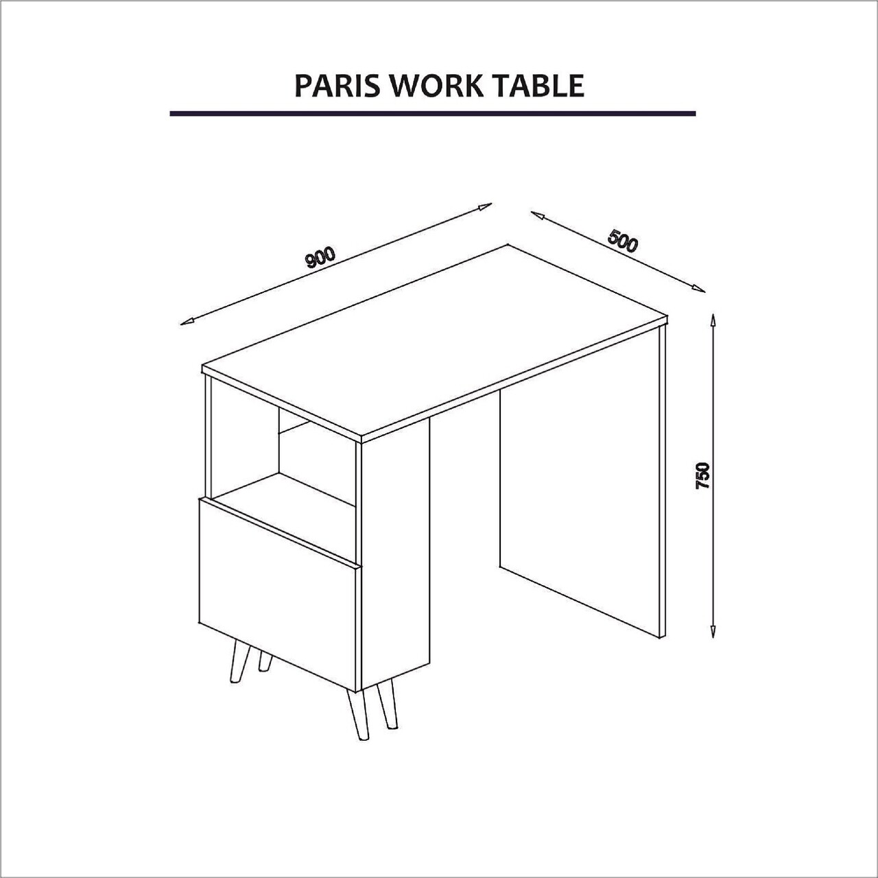 Birou Paris, Maison in Design, 90 x 50 x 75 cm, PAL, alb