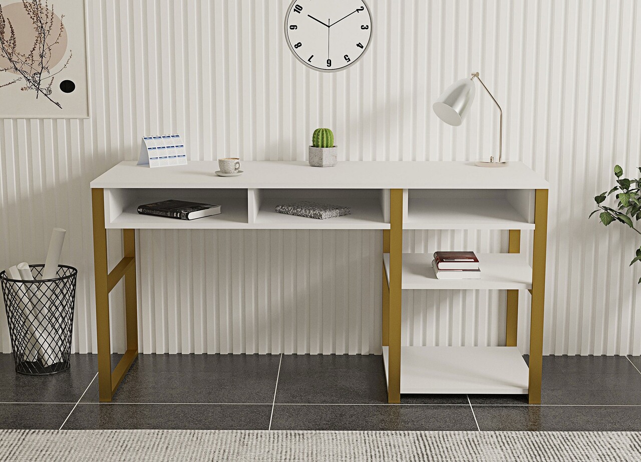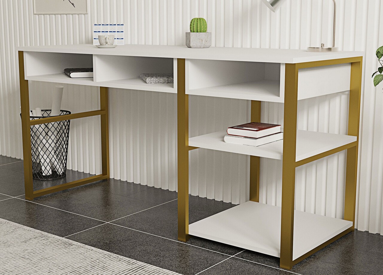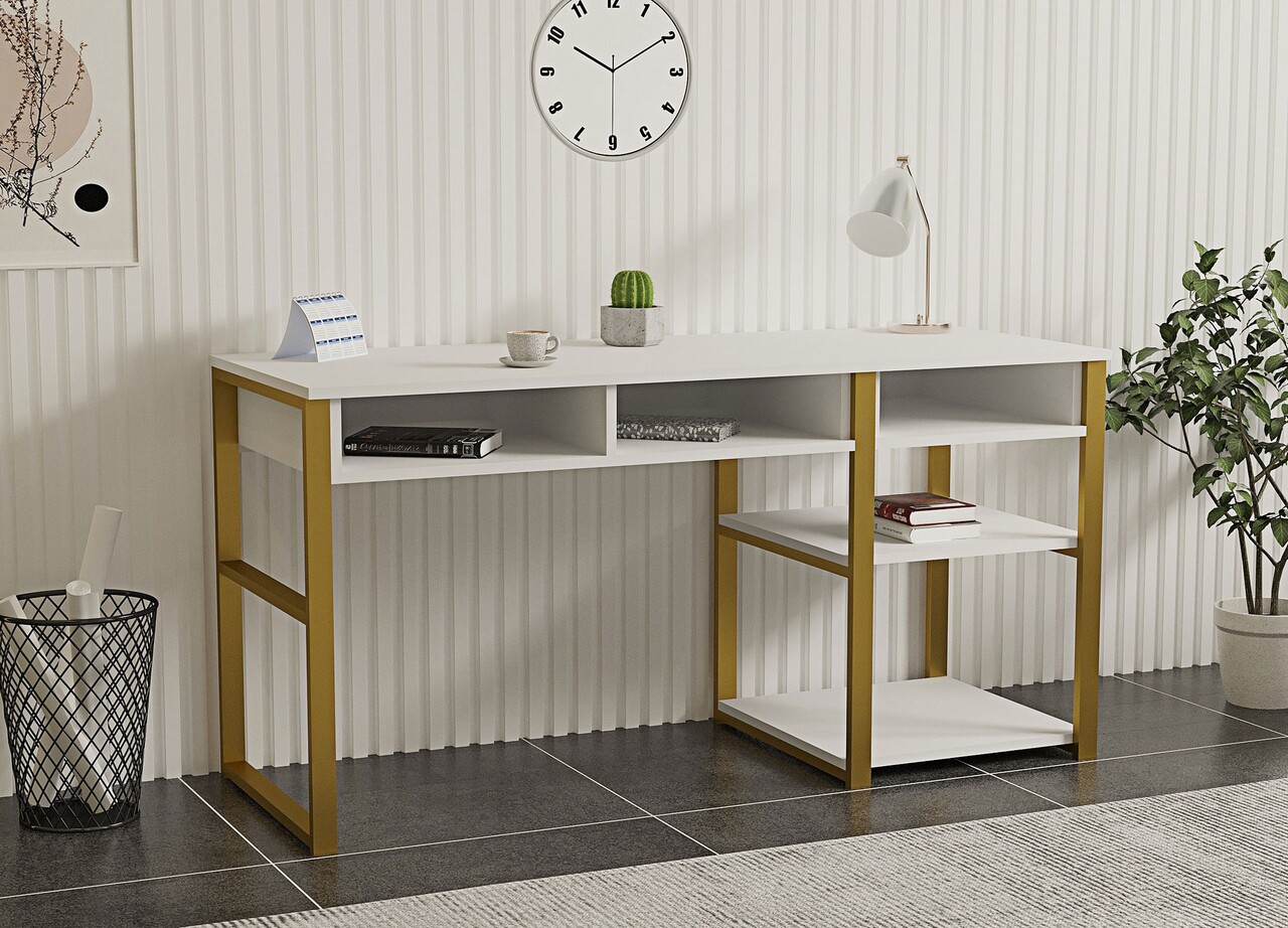 Birou, Puqa Design, Emro, 150x75 cm, PAL, Alb/Auriu
