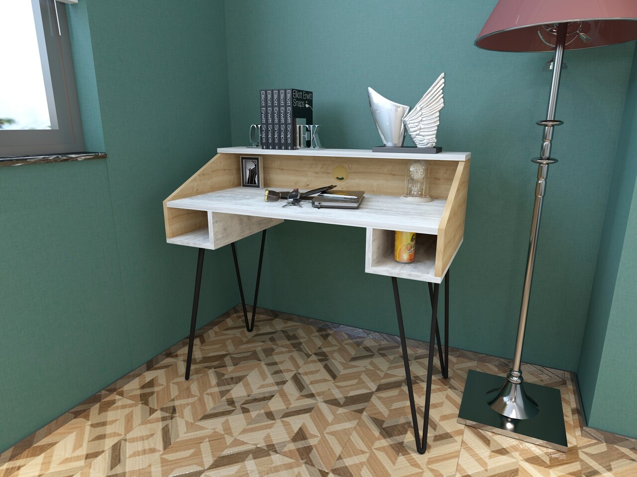 Birou Raffline, 100x50x93 cm, PAL, alb/stejar