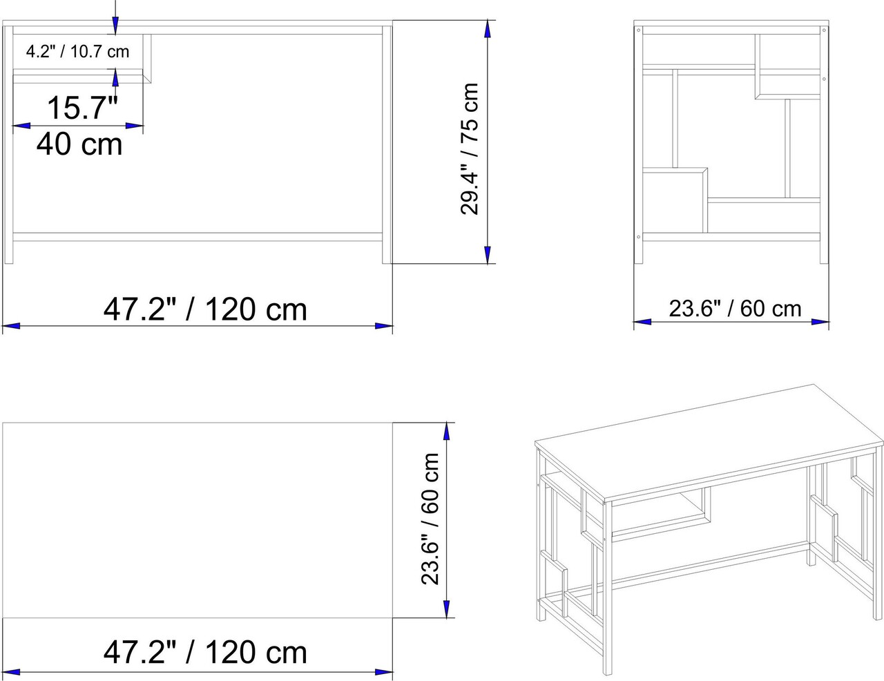 Birou Victory, Hadley, 120x60x75 cm, PAL, auriu/alb