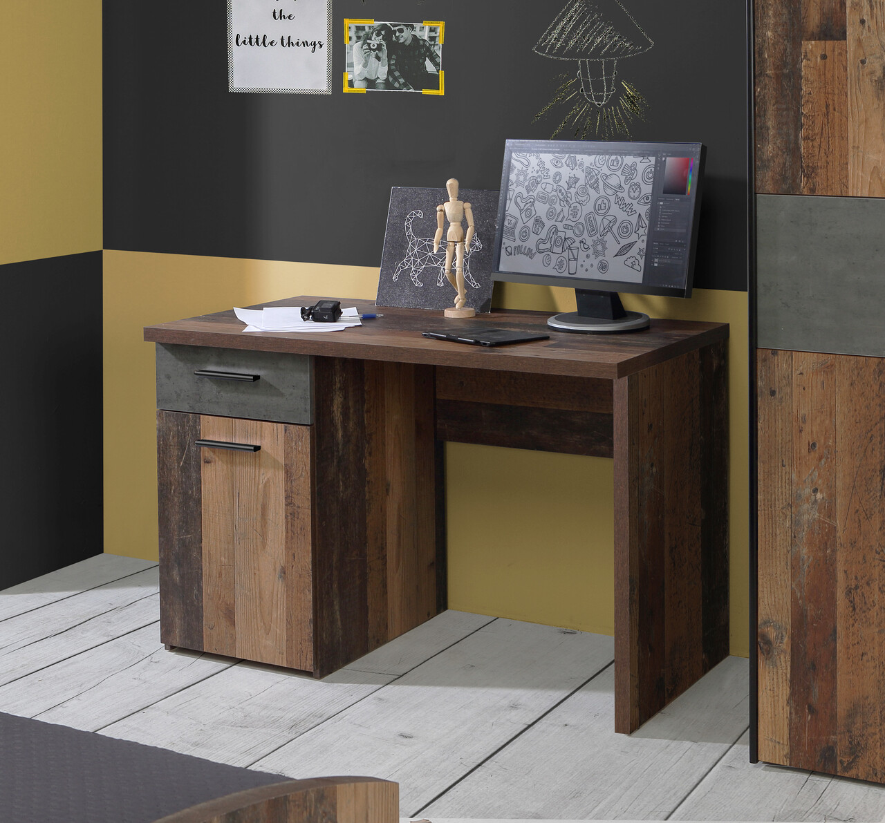 Birou Wijk, Bedora, 110x60x76.3 cm, PAL/plastic, maro antic/gri inchis