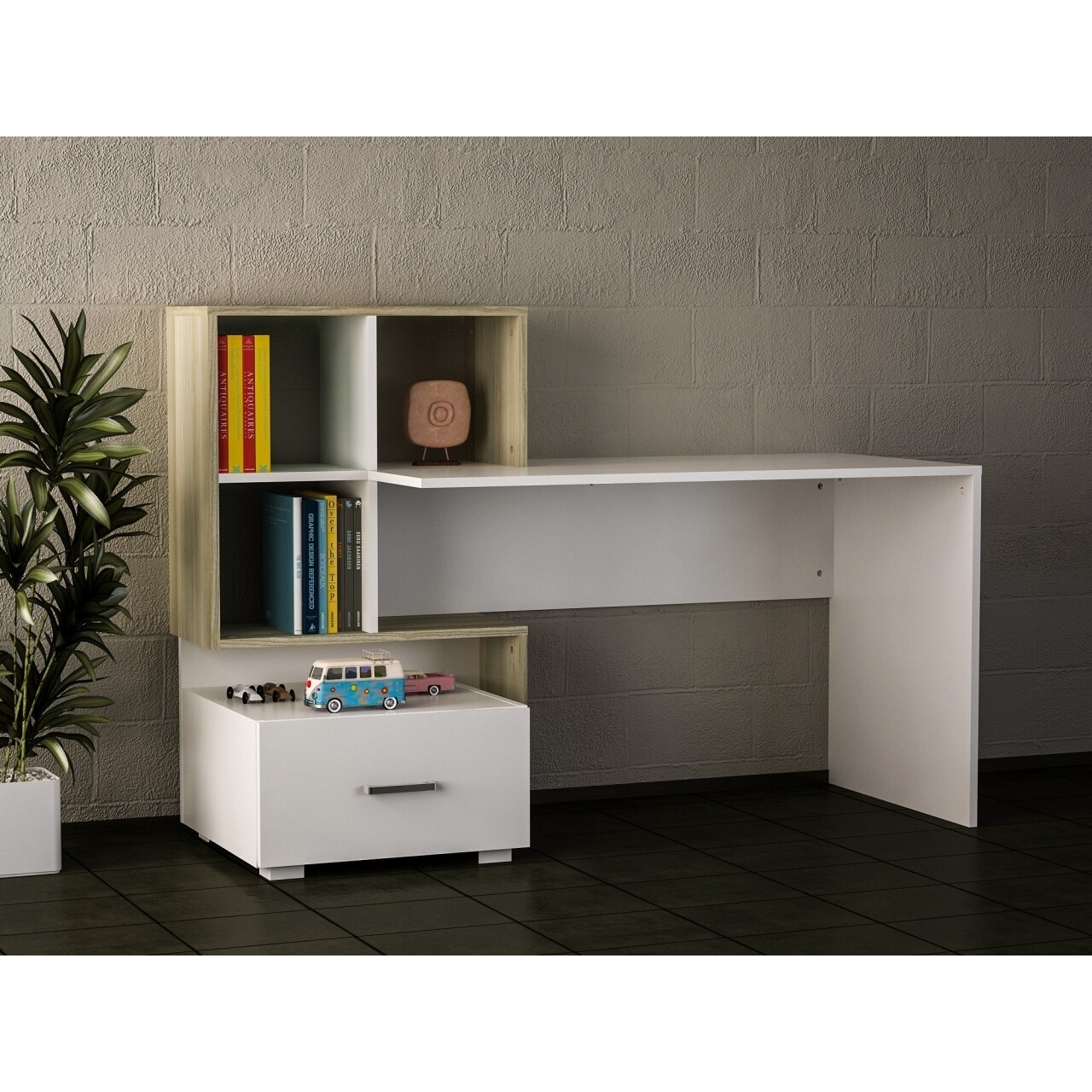 Birou Wooden Art, Bloom White Cordoba, 152.7x105.6x60 cm