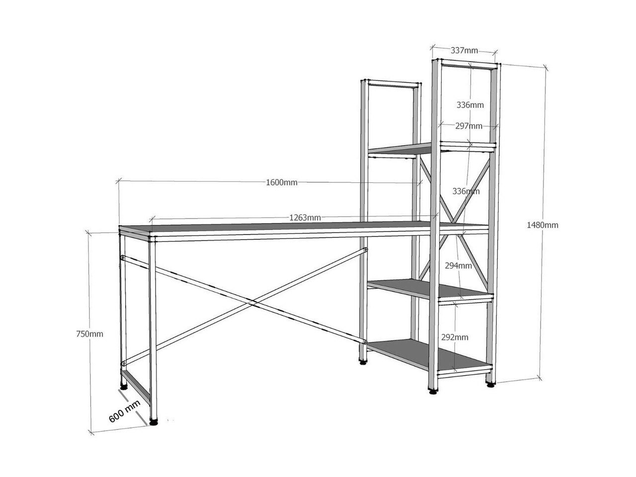 Dimensiune totala birou: Latime: 160 cm Inaltime: 148 cm Adancime: 60 cm