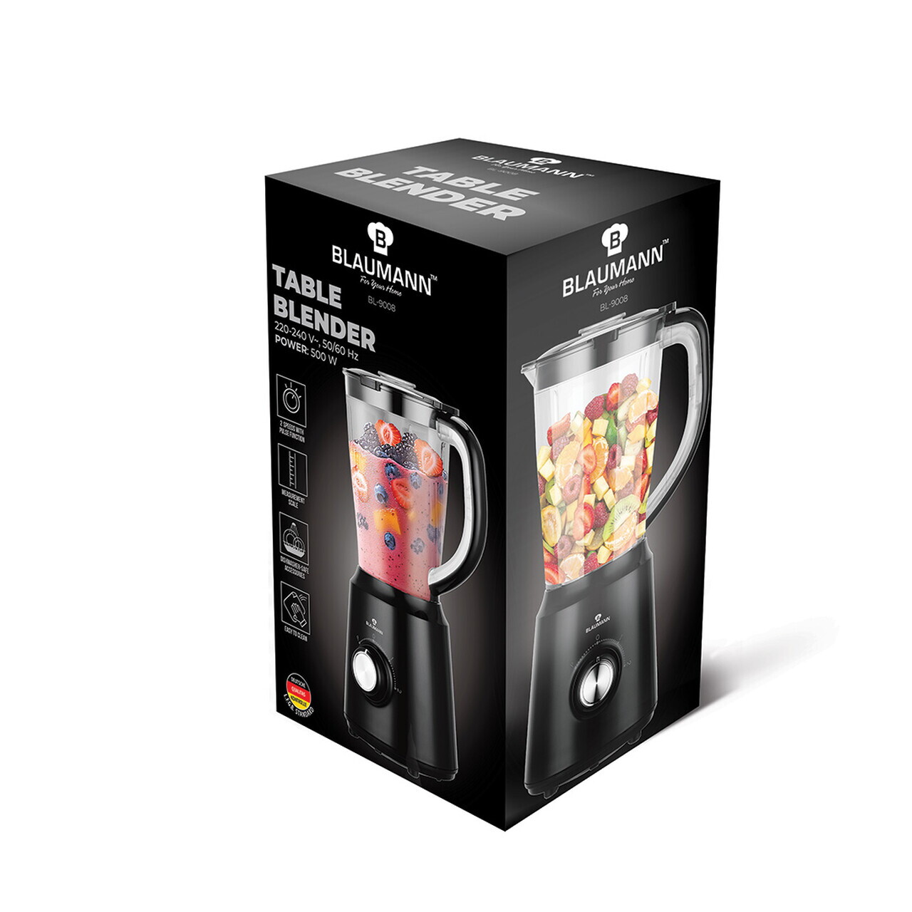 Blender de masa Blaumann, Black Silver, 500W, 1.5 L, plastic/inox, negru/transparent
