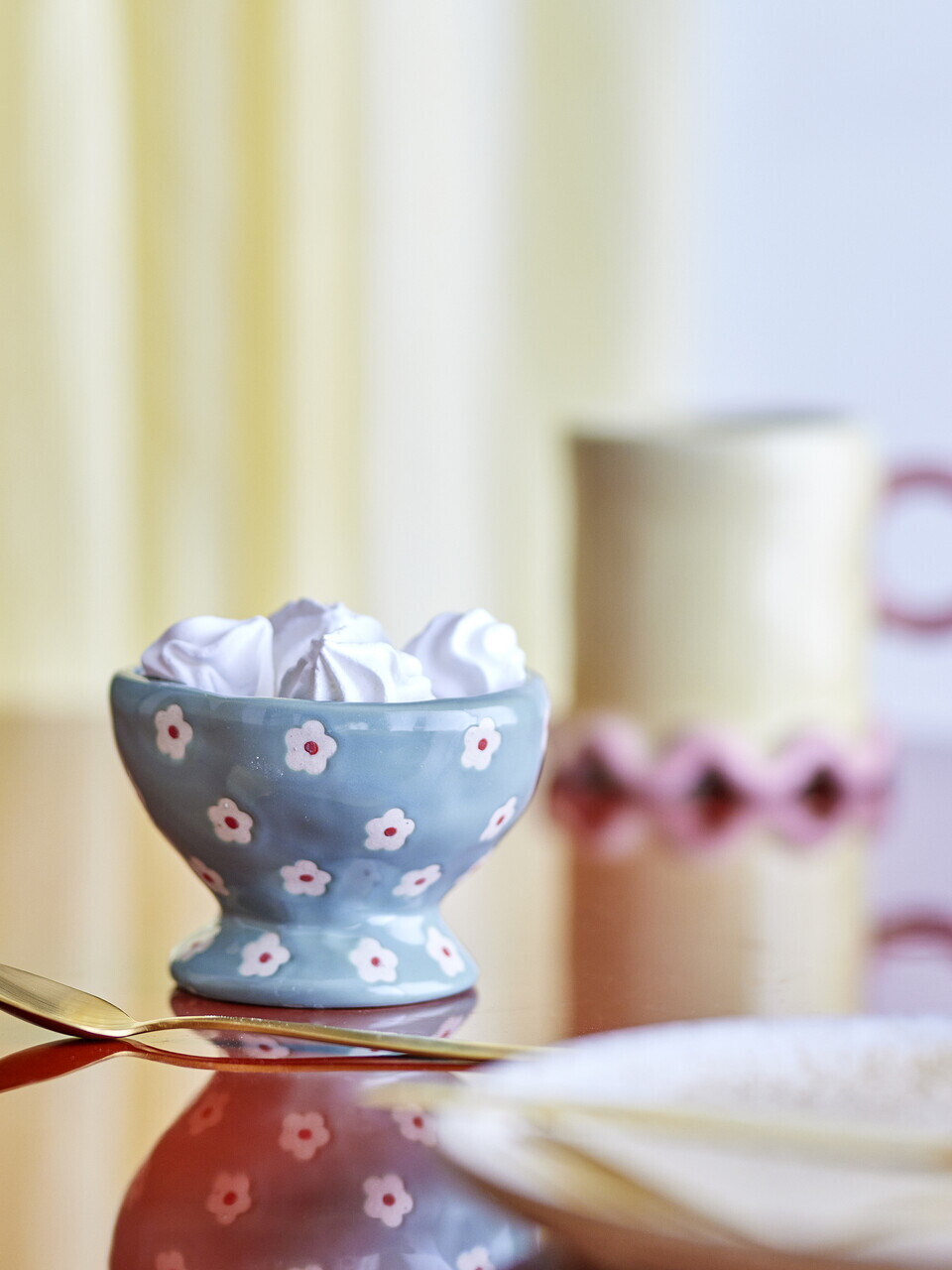 Bol, Bloomingville, Nini Flowers, 9x6.5 cm, 170 ml, ceramica, albastru