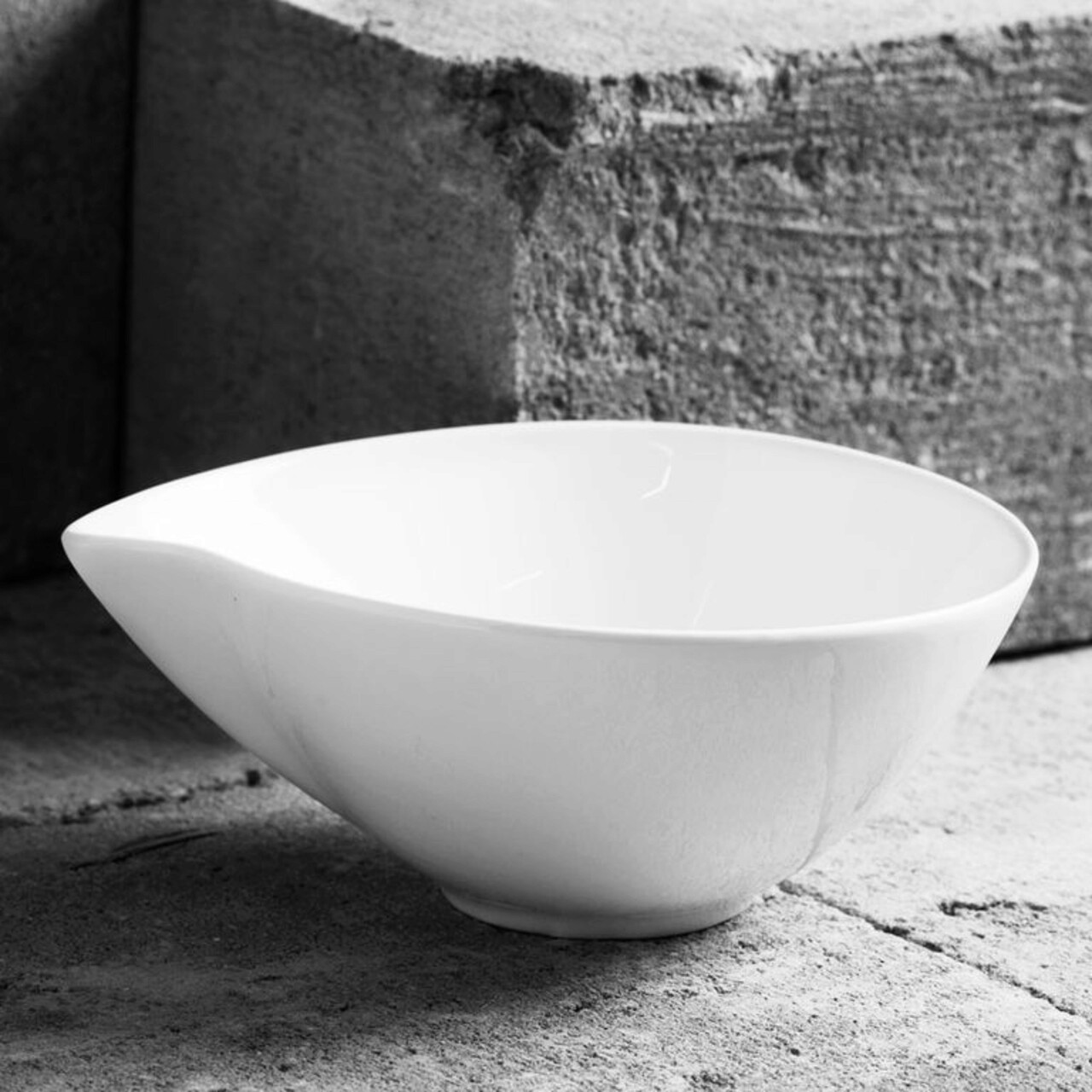 Bol pentru servire, din portelan alb de inalta calitate. Prezinta o forma interesanta, moderna, insa culoarea ii pastreaza eleganta si simplitatea. Se poate spala cu usurinta in masina de spalat vase si poate fi folosit in cuptorul cu microunde. Separat se poate achizitiona suportul pentru bol Fala 19.5 x 17.5 cm.