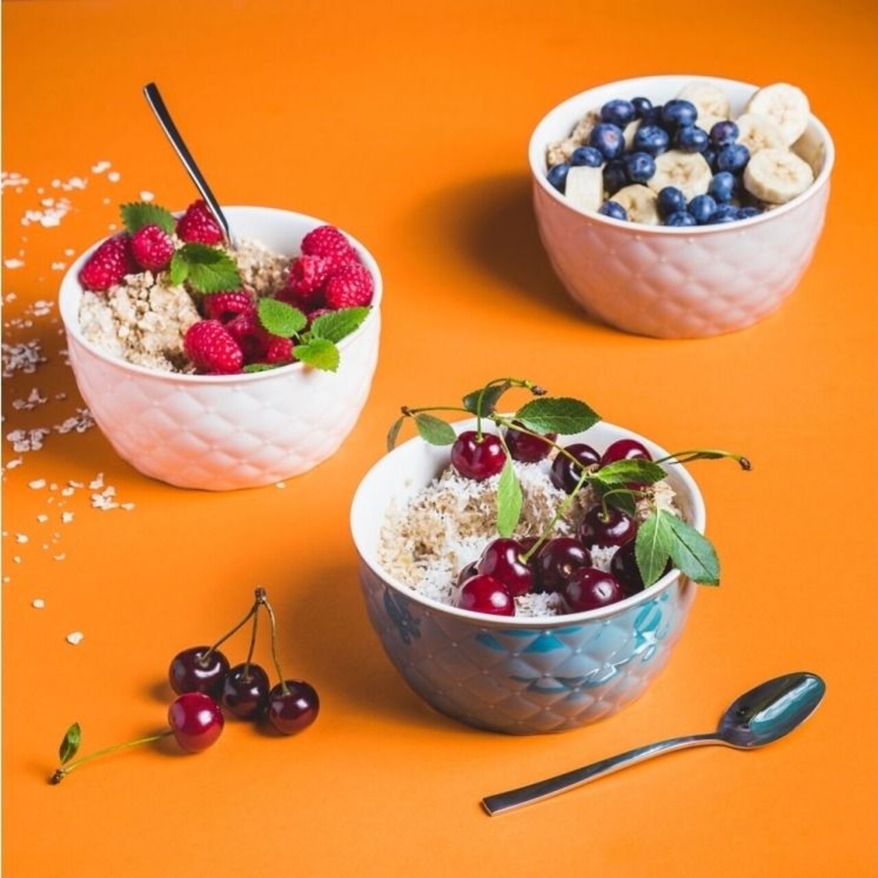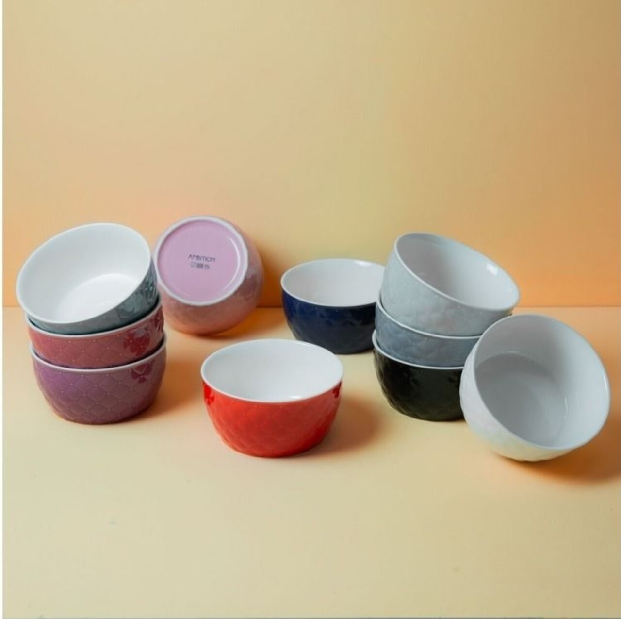Boluri din portelan veritabil cu model imprimat in relief. Diametru de 13.5cm, disponibile in mai multe culori, pentru a se potrivi perfect cu bucataria dumneavoastra.