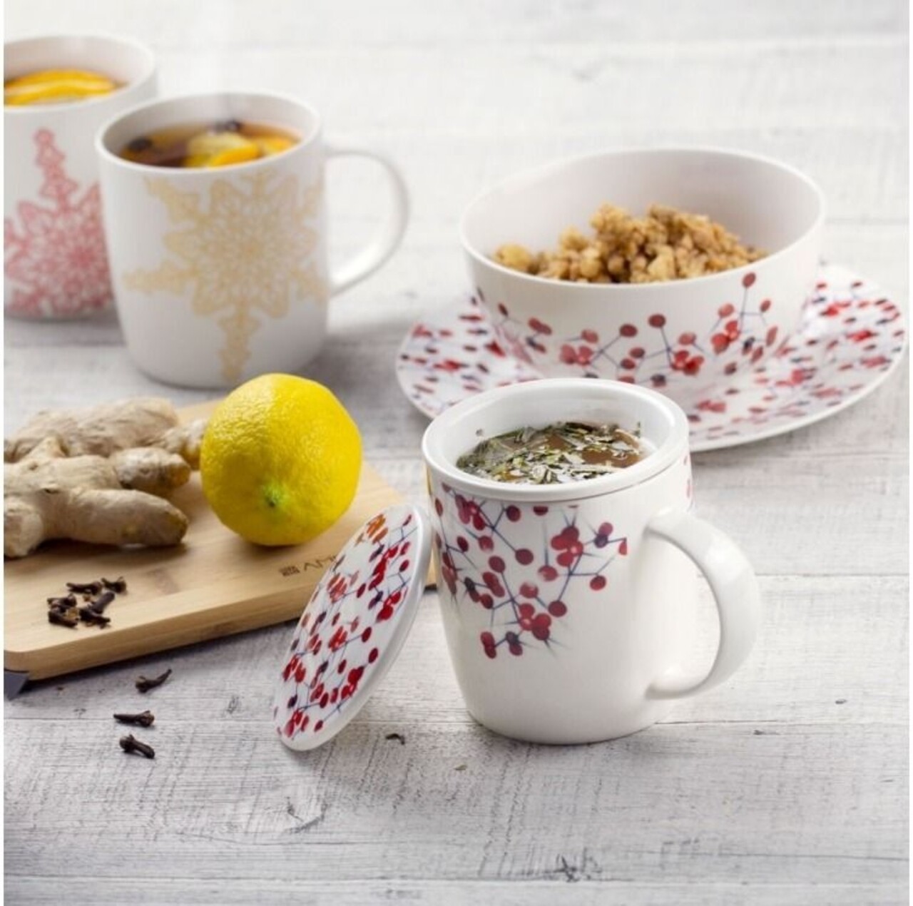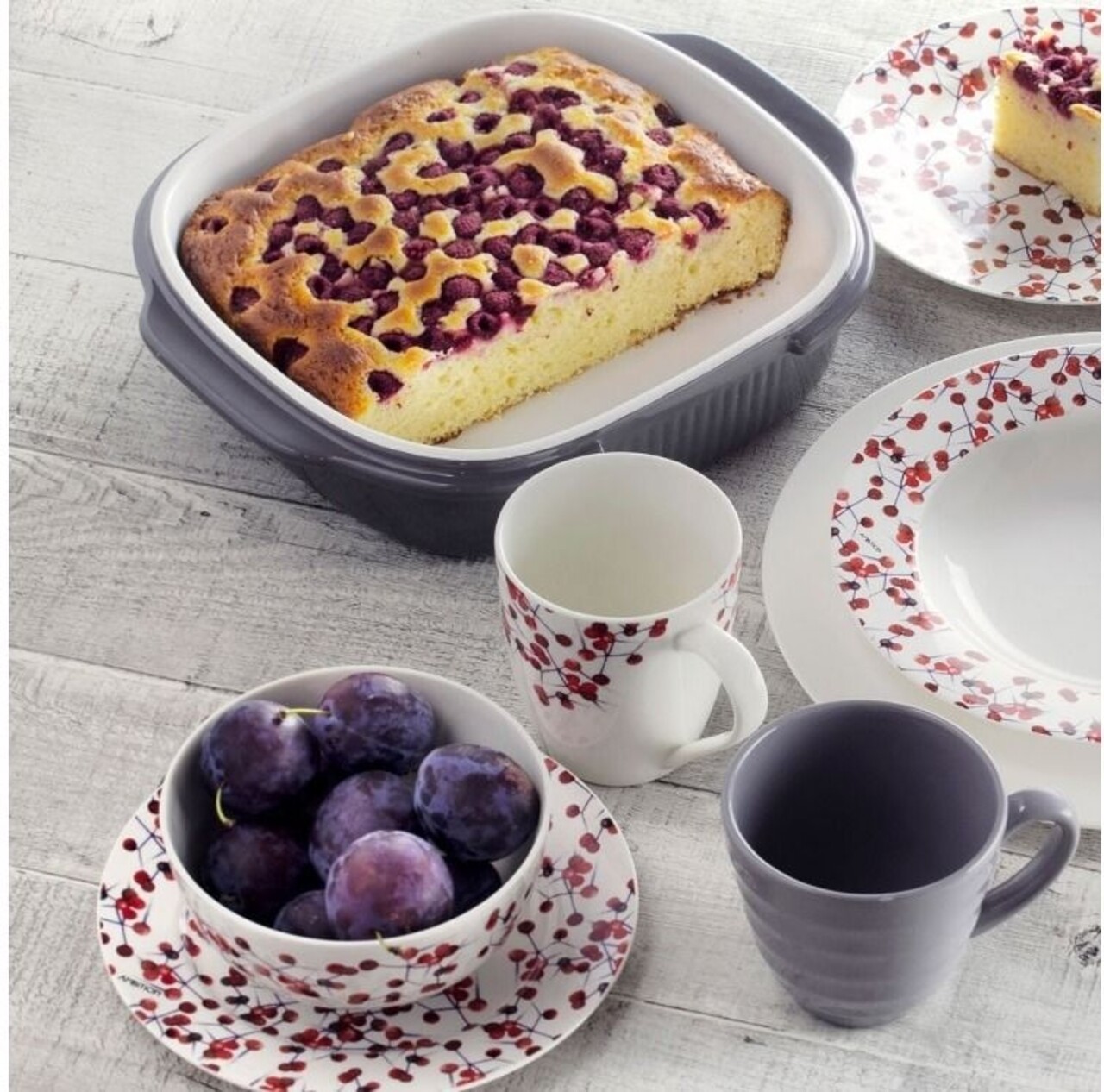 Colectia Holly este produsa din portelan de foarte buna calitate, fructele de padure decorative aducandu-i un plus de eleganta. Datorita formei si designului este potrivita atat pentru bucatariile clasice cat si pentru cele moderne. Vasele pot fi spalate cu usurinta in masina de spalat vase.