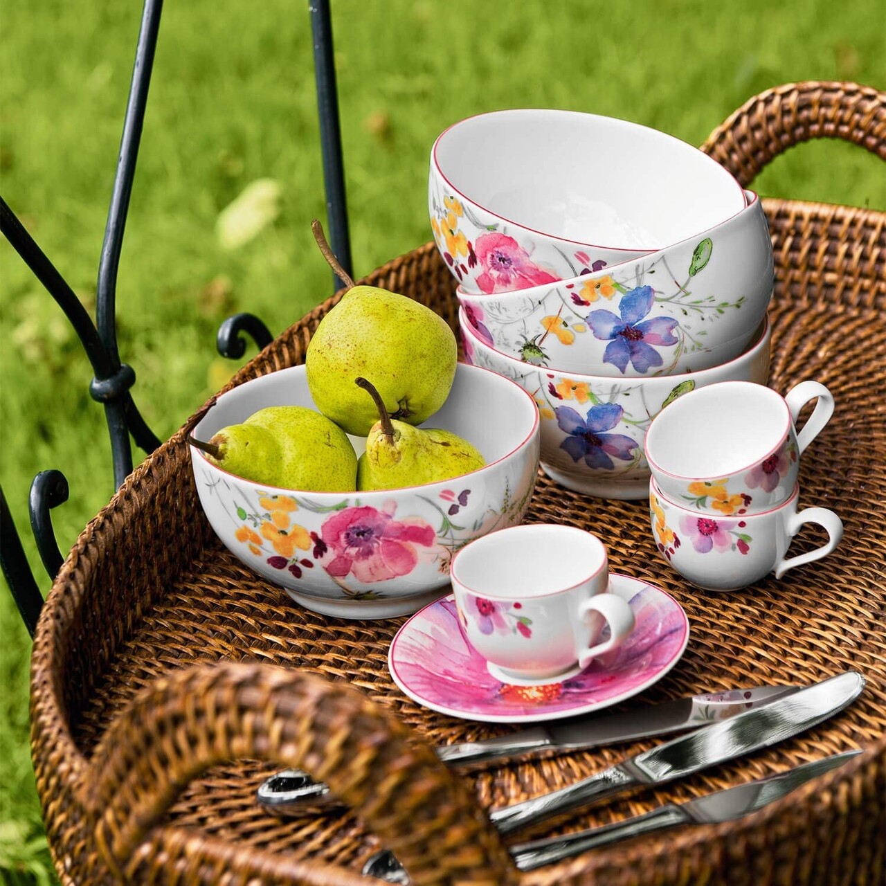 Colectia Mariefleur Basic de la Villeroy & Boch prezinta motive florale de primavara in culori indraznete si vibrante. Inspirate de gradinile lui Monet din Giverny, formele elegante si curbate ale pieselor din portelan Premium vor atrage toate privirile invitatilor.