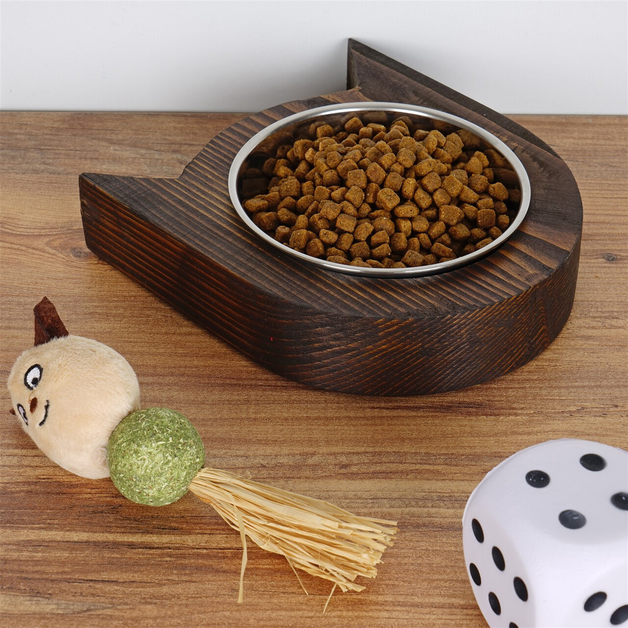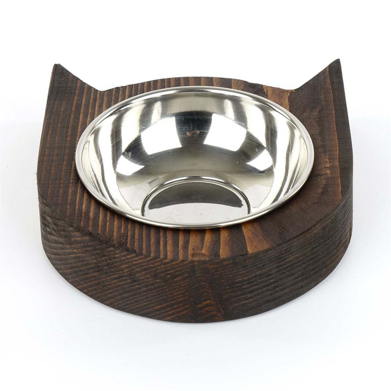 Bol pentru hrana animale de companie, Evila Originals, Pet011, 17x3 cm, Lemn, Maro