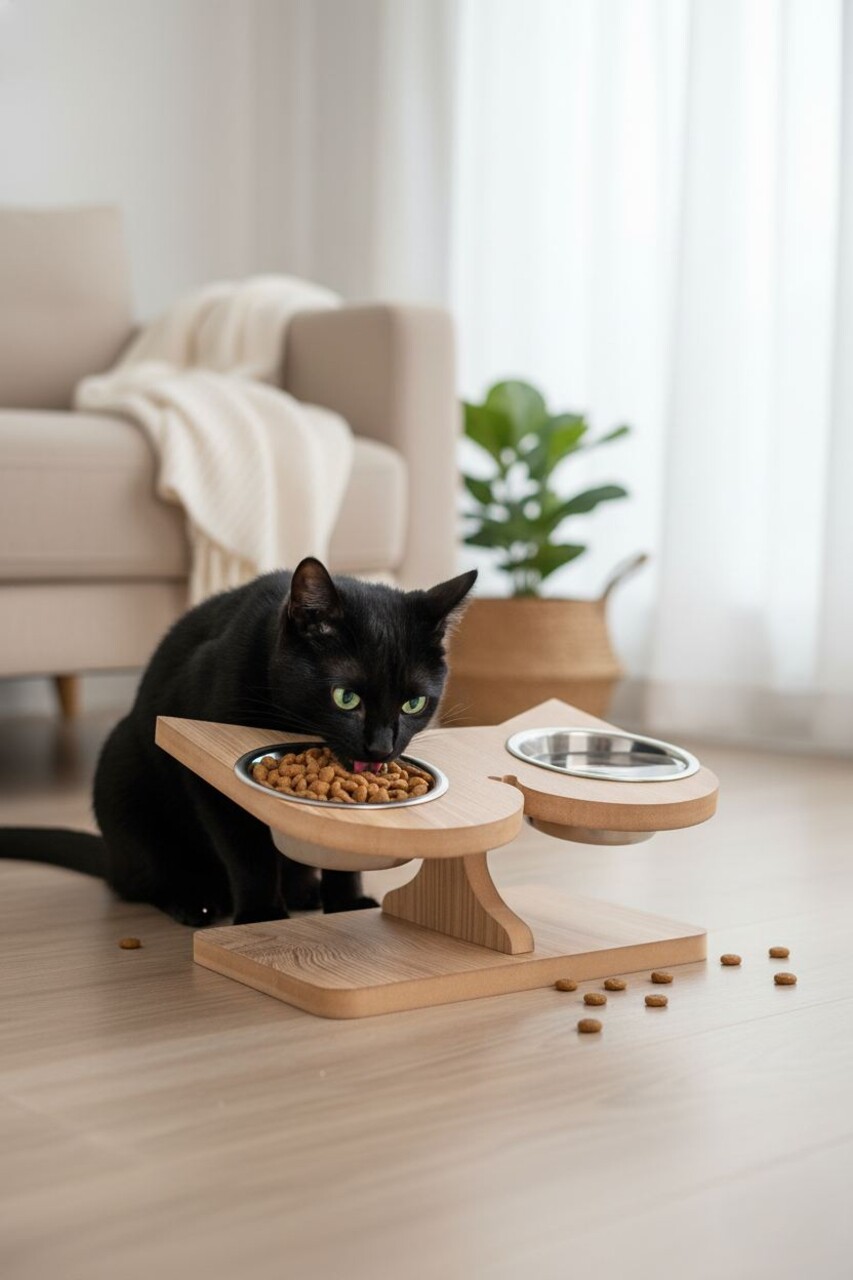 Bol pentru hrana animale de companie, Paws & Whiskers, Apvm2, MDF , Multicolor