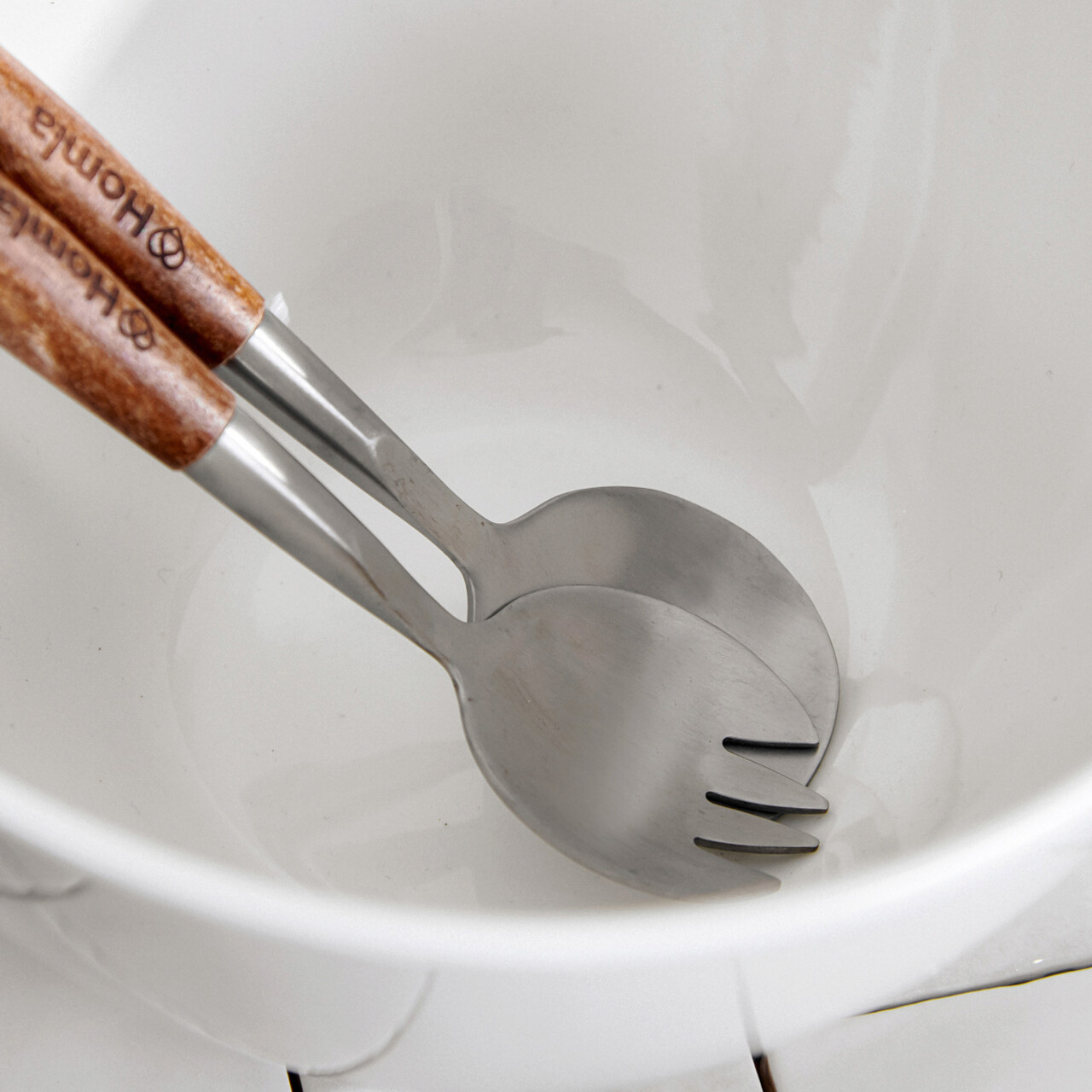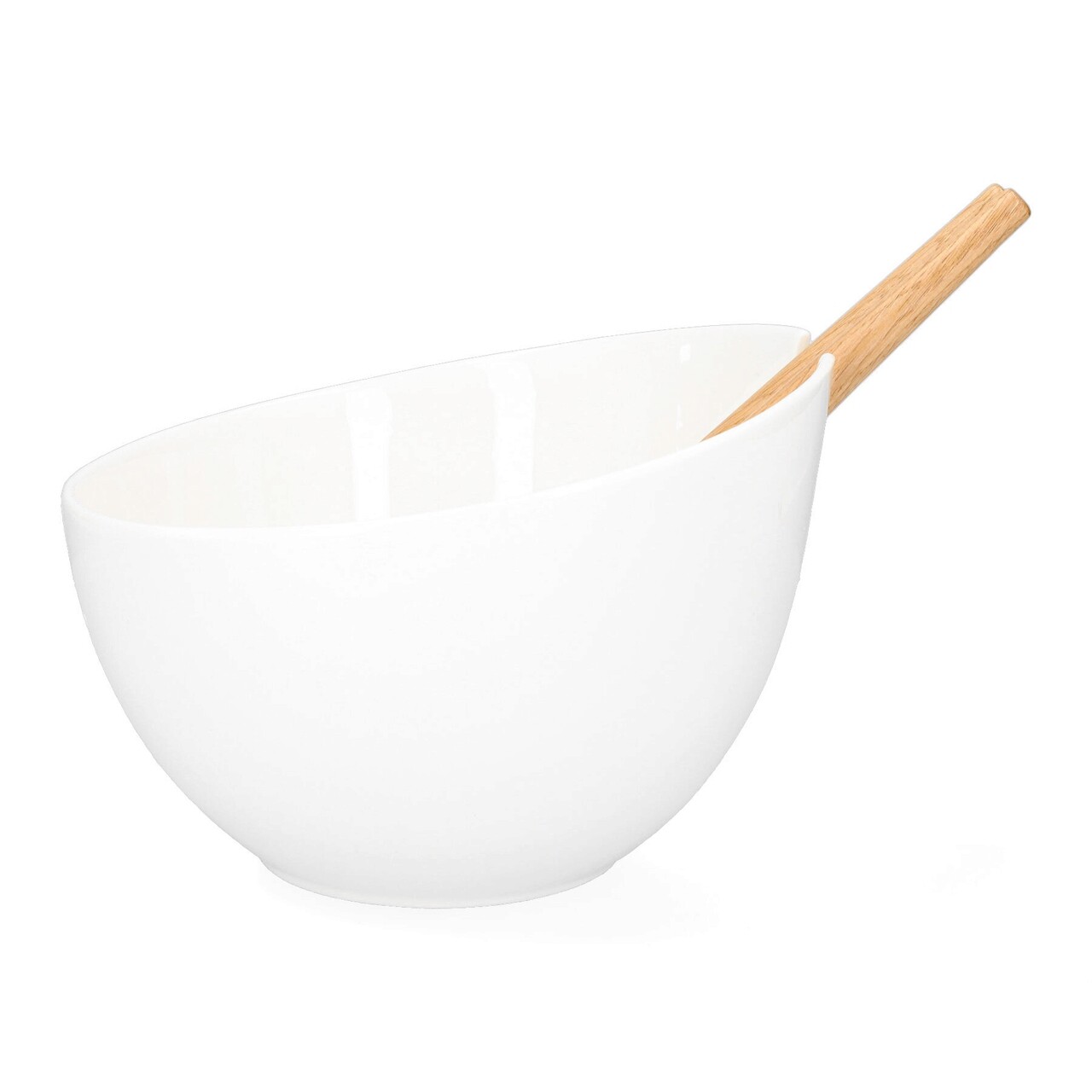 Bol pentru salata si 2 ustensile Mooka, Homla, 24 cm, portelan, alb