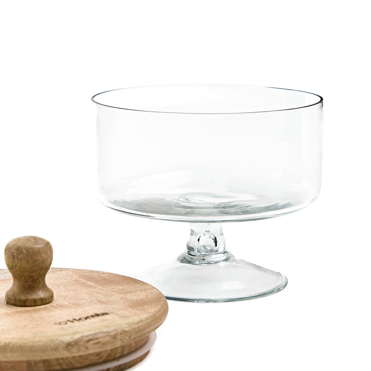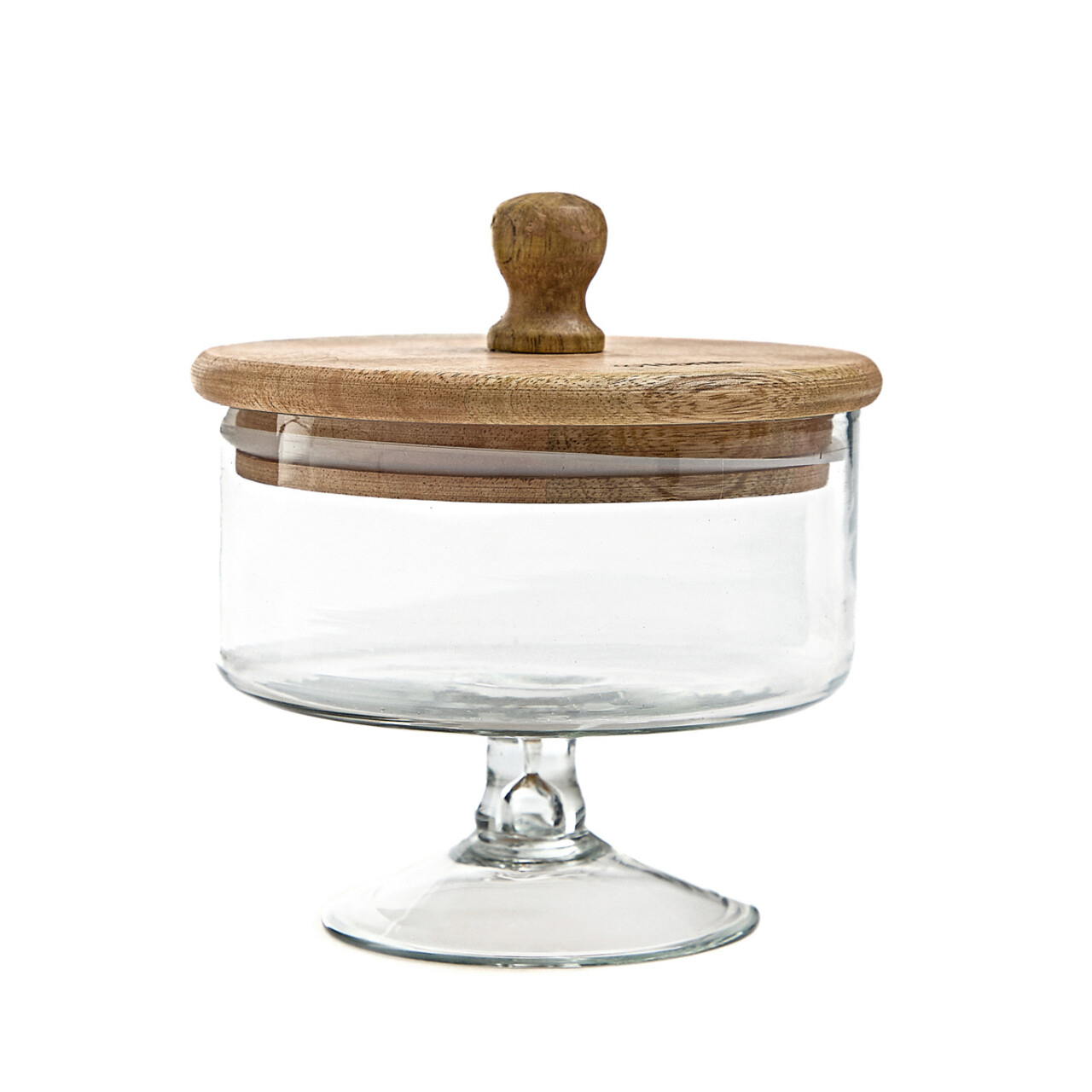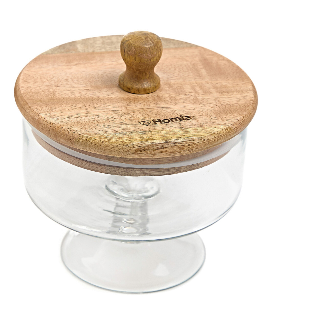 Bol pentru servire cu capac Wood Colony, Homla, 13x15 cm, sticla/lemn, transparent/natur