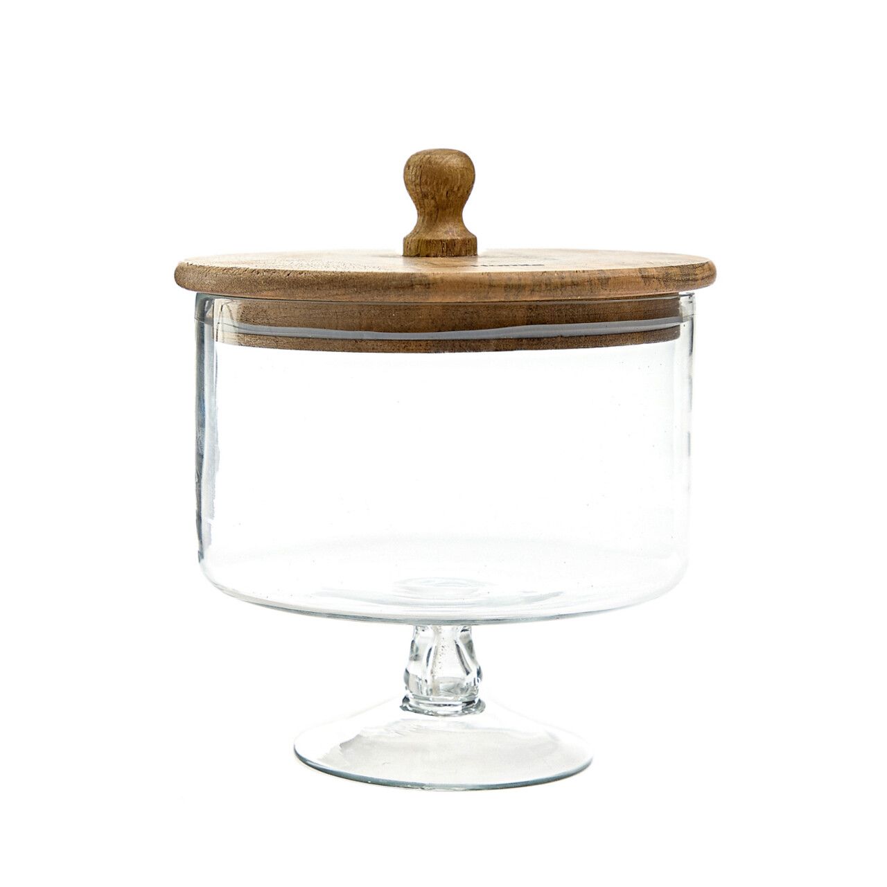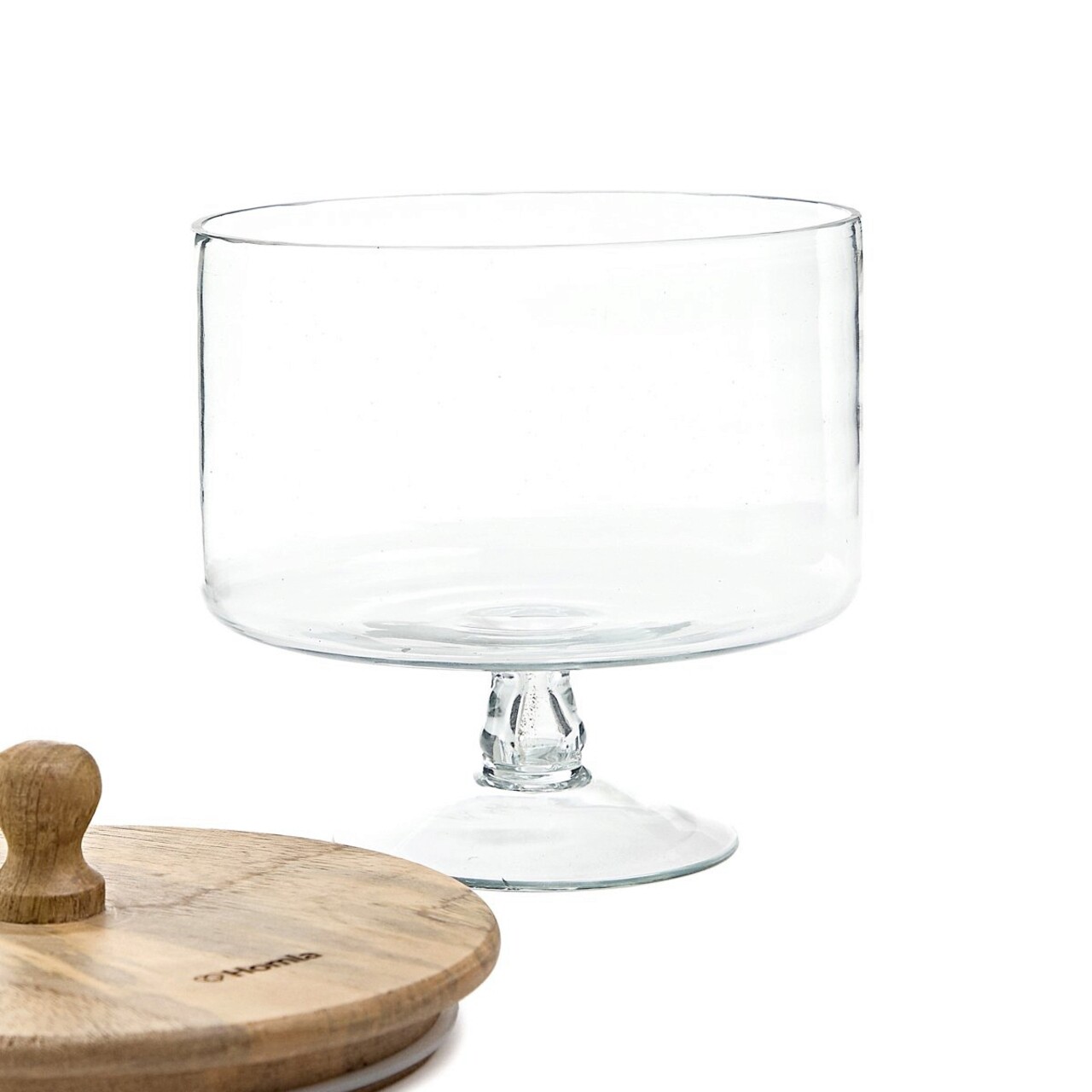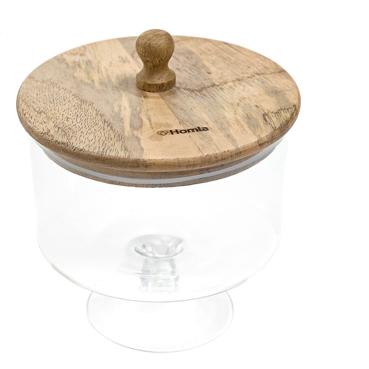 Bol pentru servire cu capac Wood Colony, Homla, 16x18 cm, sticla/lemn, transparent/natur