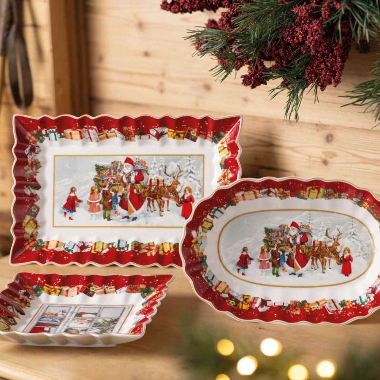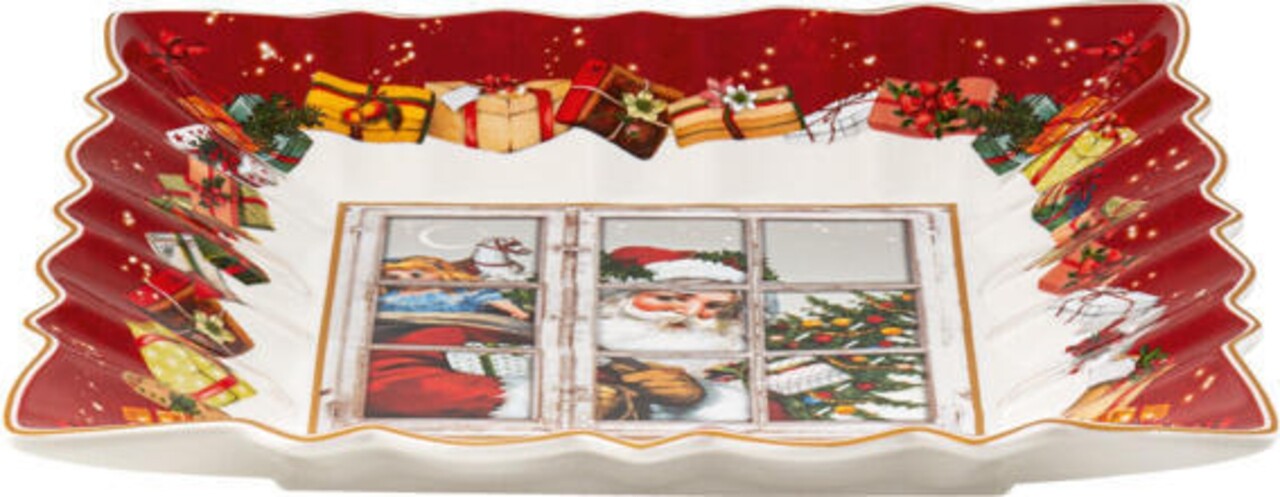 Bol pentru servire, Villeroy & Boch, Toy's Fantasy Santa Square, 23 cm, portelan premium, pictat manual