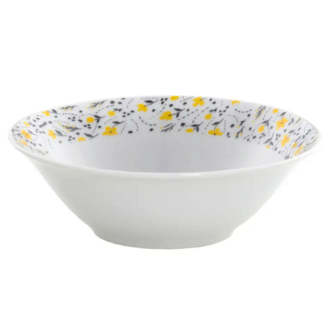 Bol mare din portelan 23 cm, Domotti Amarillo, model floral.