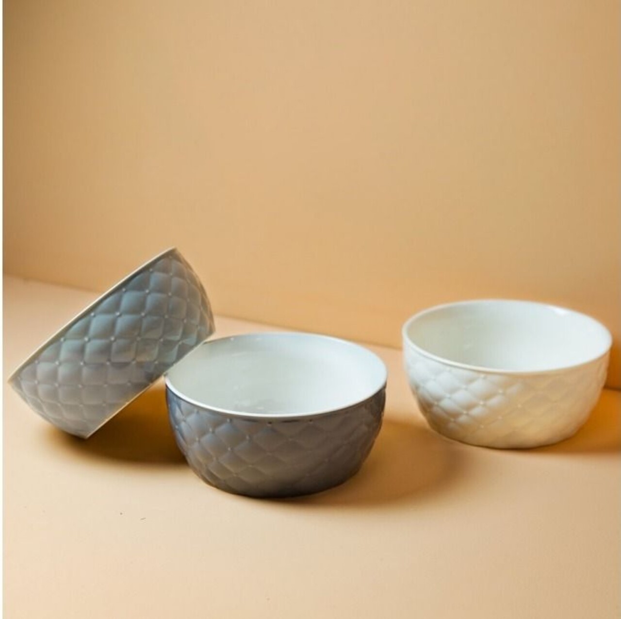 Boluri de salata din portelan originale cu modelul in reilef. Dimensiunea de 17 cm. Disponibil in 3 culori: alb, gri, gri deschis.