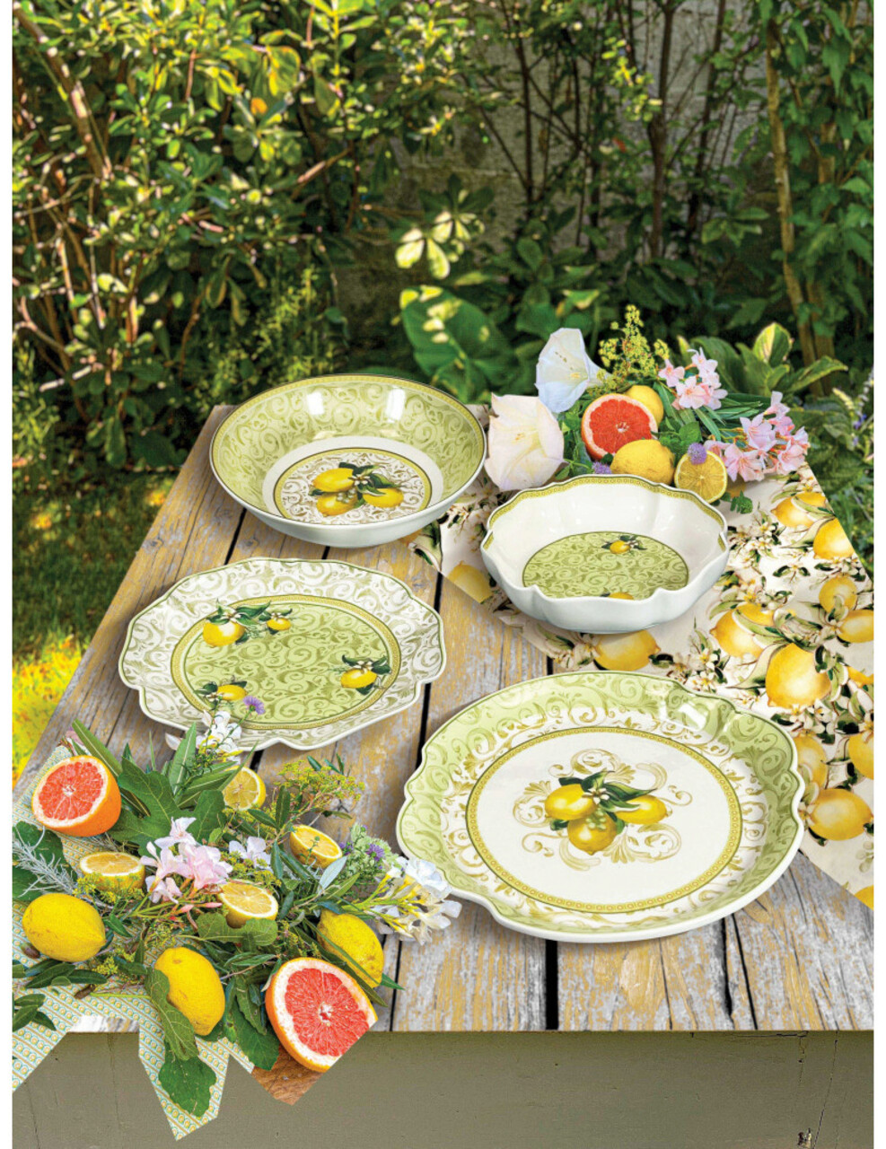 Proaspata, eleganta, delicata: colectia Lemoni reflecta peisajele mediteraneene, unde natura vesnic verde se combina cu florile si fructele pentru a crea un paradis de parfumuri si nuante. Decor elegant si culori stralucitoare combinate intr-un set de articole de masa si de uz casnic concepute pentru a regenera mintea si spiritul.