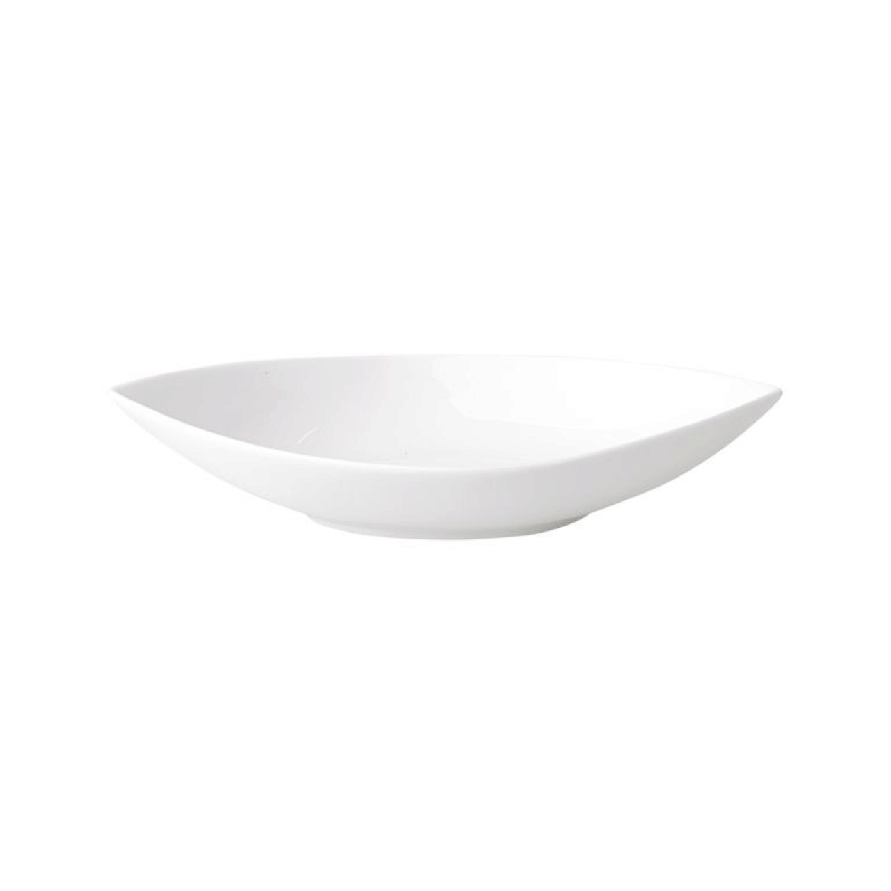 Bol pentru servire, din portelan alb de inalta calitate. Prezinta o forma interesanta, moderna, insa culoarea ii pastreaza eleganta si simplitatea. Se poate spala cu usurinta in masina de spalat vase si poate fi folosit in cuptorul cu microunde.