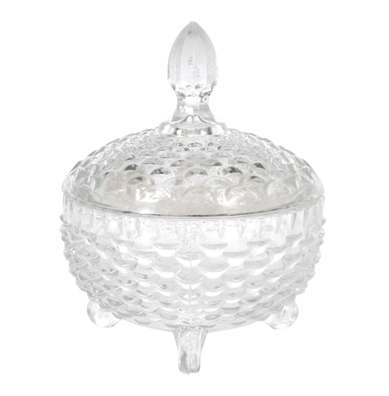Bomboniera cu capac V4, Excellent Houseware, 9.8x12.5 cm, 200 ml, sticla, transparent
