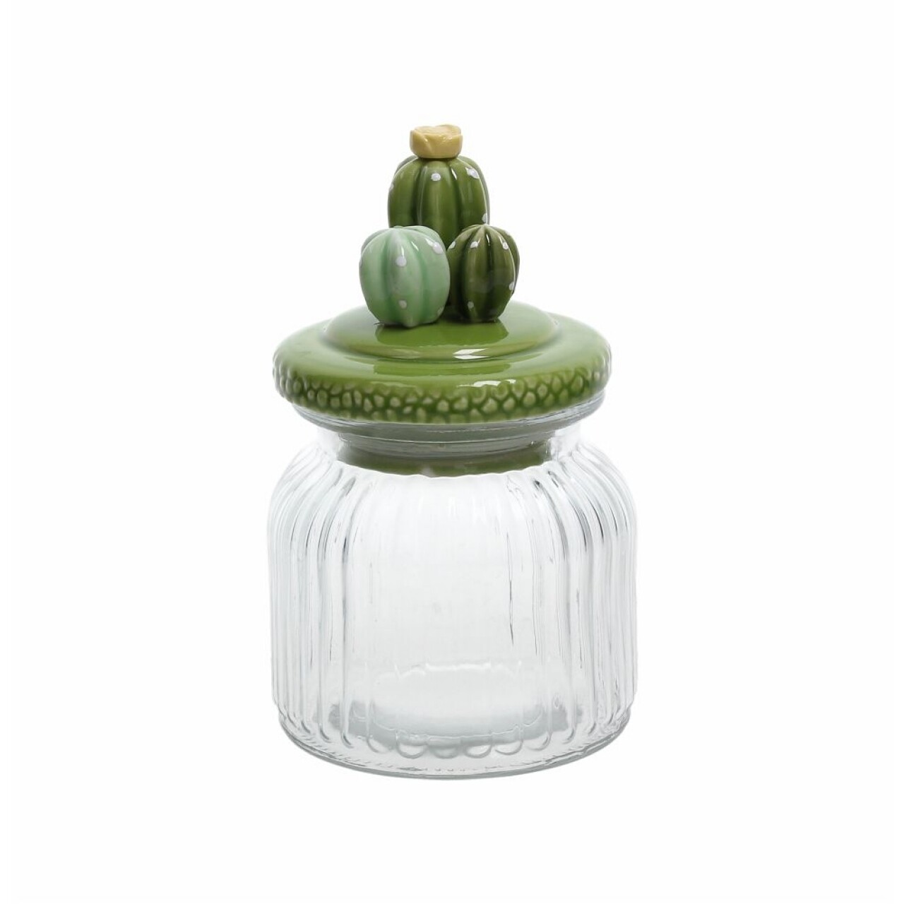 Recipientul Cactus, realizat din sticla si prevazut cu un capac din portelan ce se inchide ermetic, este ideal pentru depozitarea alimentelor si a diverselor condimente.