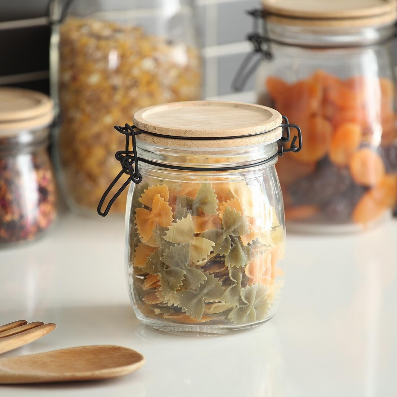 Borcan cu capac Paxton, Versa, 10.8 x 10.8 x 14 cm, sticla/bambus